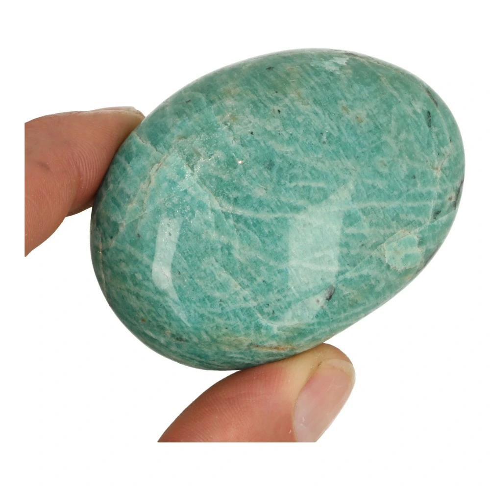 Heerlijk heldere amazoniet knuffelsteen groot van 6-7cm lang, 5-6cm breed en 2,5-3cm dik met een prachtige kleur. Bij jouw bestelling zoeken we degene uit die het beste bij je past. Je ontvangt een soortgelijke amazoniet knuffelsteen als op de foto’s.