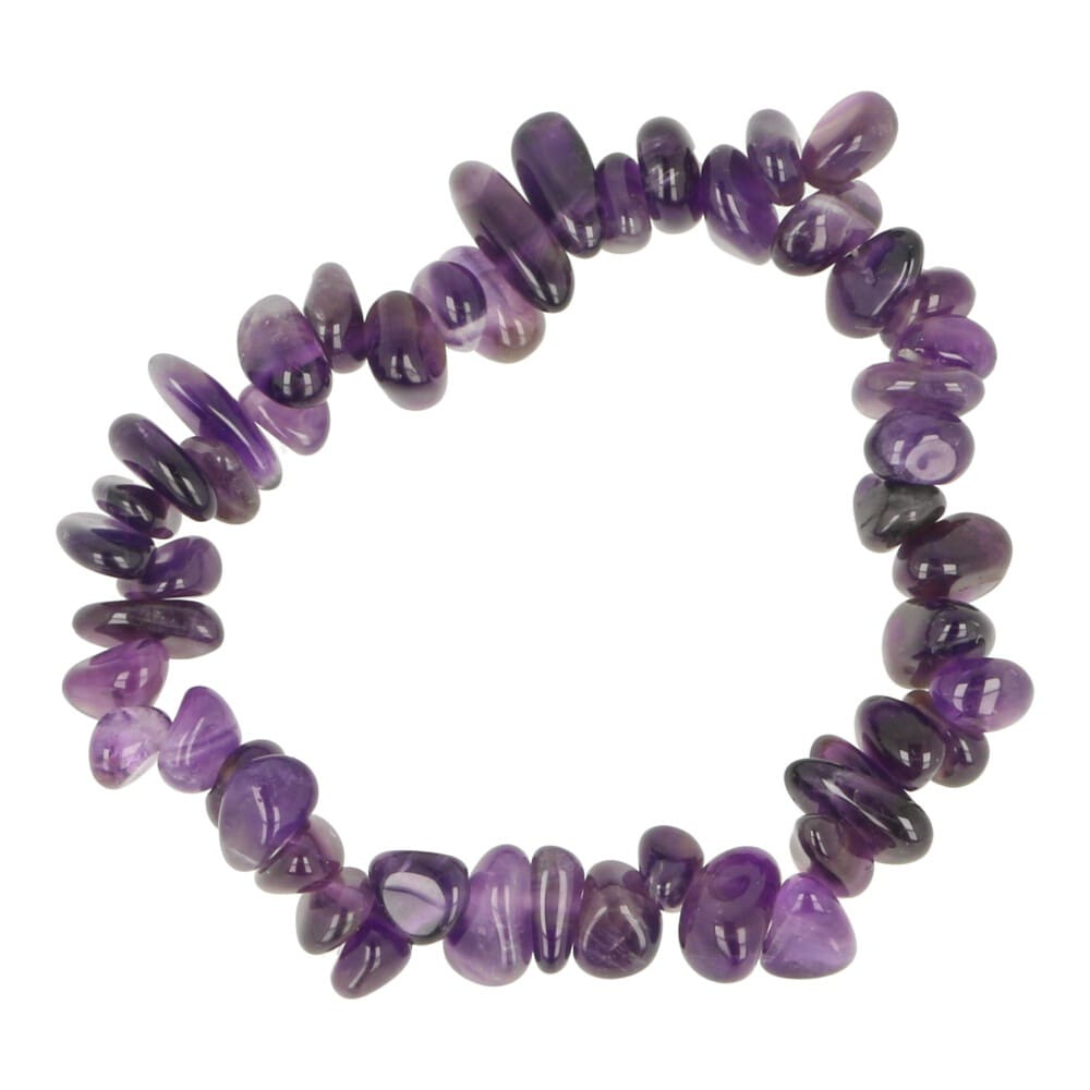 Prachtige amethist armband split in donker paarse kleur. Deze kleine stukjes donker paarse amethist zijn geregen tot een rekbare armband. De kleur en doorschijnendheid van de steentjes varieert, je ontvangt een soortgelijke amethist armband split als op de foto.