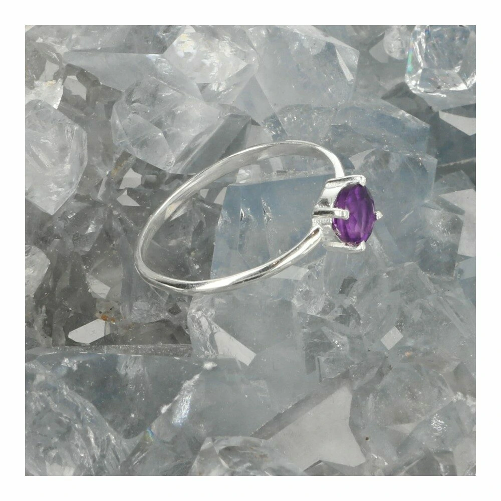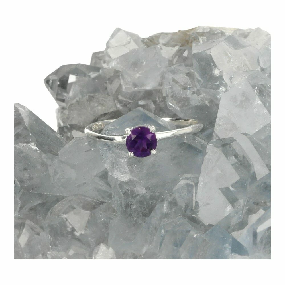 Prachtig helderpaarse, facetgeslepen amethist ring met een diameter van circa 5mm. De amethist ring is gemaakt van volledig juwelierskwaliteit 925 sterling zilver. We hebben verschillende maten op voorraad. Je ontvangt een soortgelijke facetgeslepen amethist ring als op de foto, de kwaliteit is zeer gelijkwaardig.