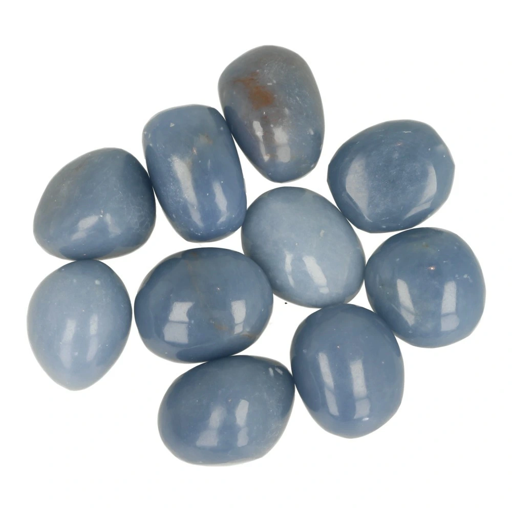 Angeliet heeft, zoals de naam al zegt, ook een sterke verbinding met het engelenrijk. Het maakt het leven lichter en meer vredig in zware emotionele tijden. Het helpt je zorgvuldig je woorden te kiezen en met mededogen te spreken. Het strijkt de aura glad rondom het keelgebied waardoor disbalansen in je spreken verdwijnen en je weer met zachtheid en harmonie jezelf kunt uiten.