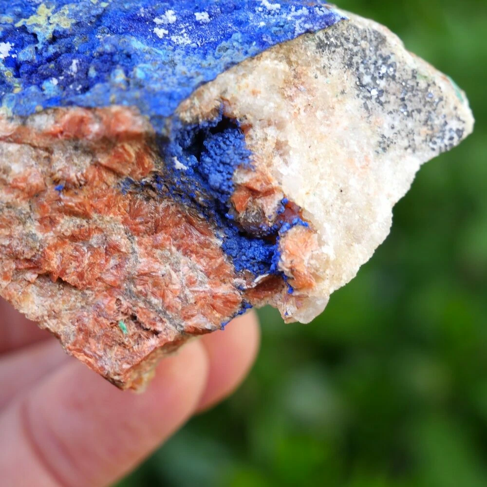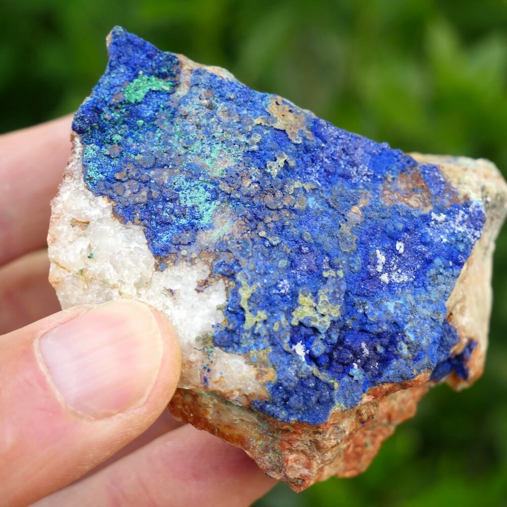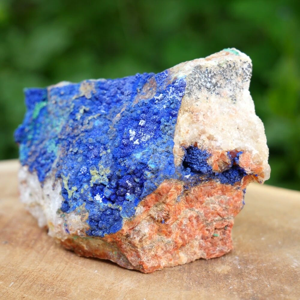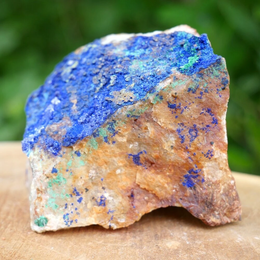 Helder blauwe azuriet met groene malachiet ruw nr1 uit Marokko. Fraaie kwaliteit met azuriet die plaatselijk in kleine bolletjes is gekristalliseerd. De afmeting van deze ruwe azuriet is ongeveer 7 x 5,8 x 5,3cm. Je ontvangt de ruwe azuriet van de foto.