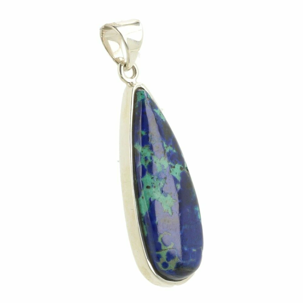 Helderblauwe A-kwaliteit azuriet met malachiet hanger in zilver van juwelierskwaliteit 925 sterling zilver. Deze fraaie hanger bestaat uit een mix van azuriet (donkerblauw) en malachiet (groen) Azuriet is het meeste aanwezig, dus voert de boventoon in de werking. Voor de volledigheid zijn zowel de werking van azuriet als malachiet hieronder weergegeven. De afmeting van de azuriet in de hanger is ongeveer 36mm hoog en 12mm breed. Je ontvangt de azuriet met malachiet hanger in zilver van de foto.