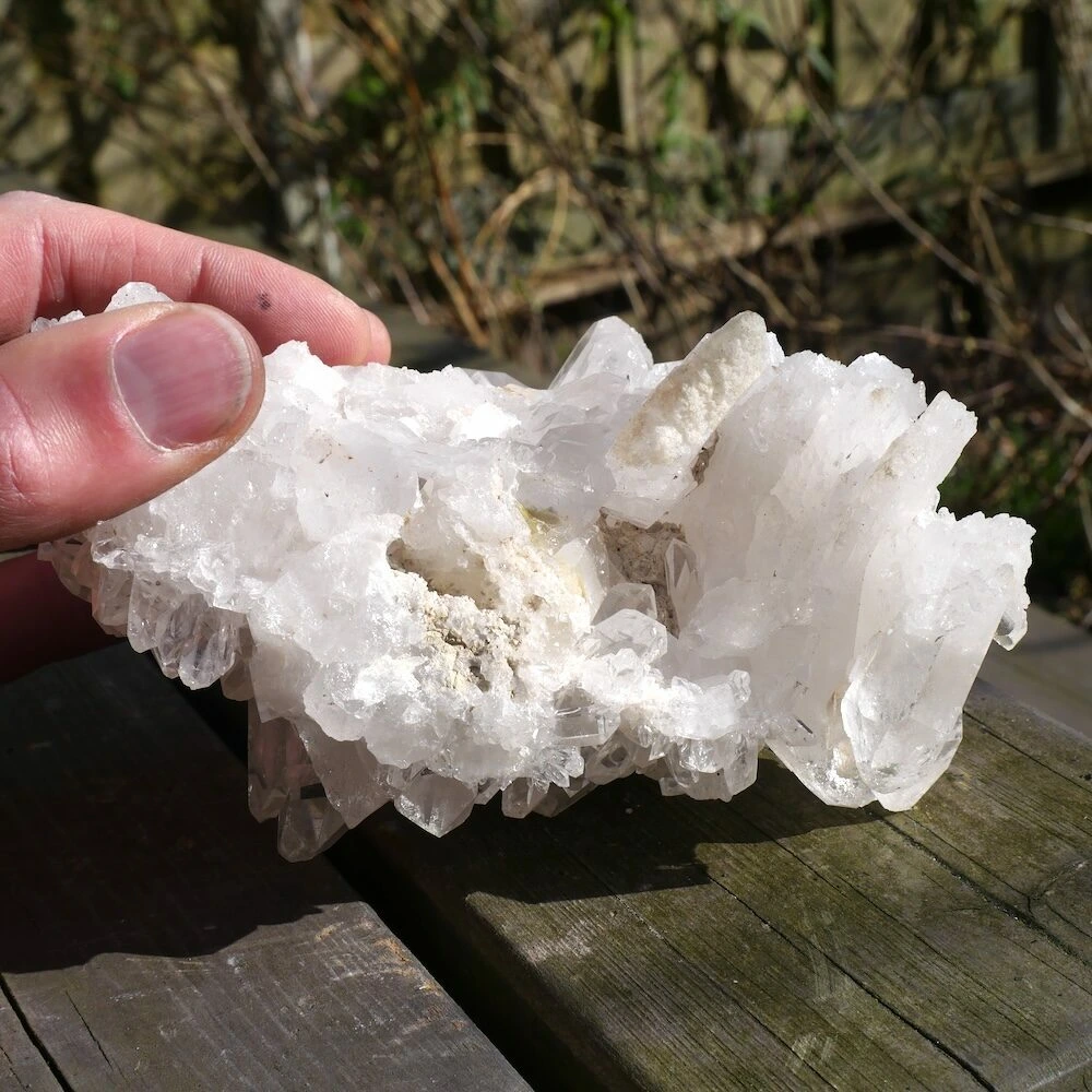 Mooi stuk ruwe bergkristal groot ‘nr3’ uit Brazilië. Dit fraaie stuk is heeft een mooie schuine vorm en vol met fraaie heldere puntjes. De afmetingen zijn ongeveer 21 cm lang, 15 cm breed en 10 cm hoog. Ongeslepen en puur natuur!