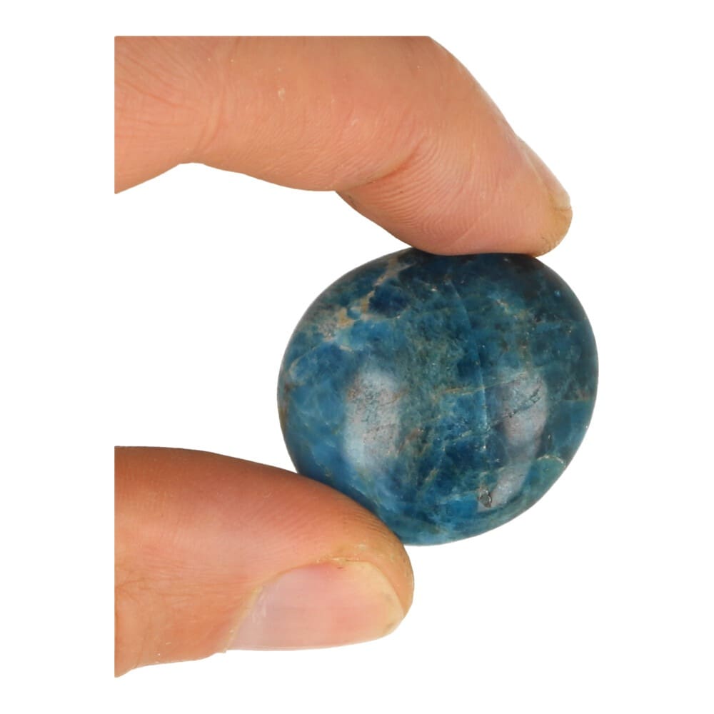 Prachtige diep blauwe apatiet trommelsteen van circa 3-3,5cm lengte in fraaie handgeslepen uitvoering. Heerlijk voor om bij je te dragen in je broekzak. Je ontvangt een soortgelijke blauwe apatiet trommelsteen als op de foto. De kleur en vorm varieert onderling, we doen ons best om een passende voor je te selecteren.