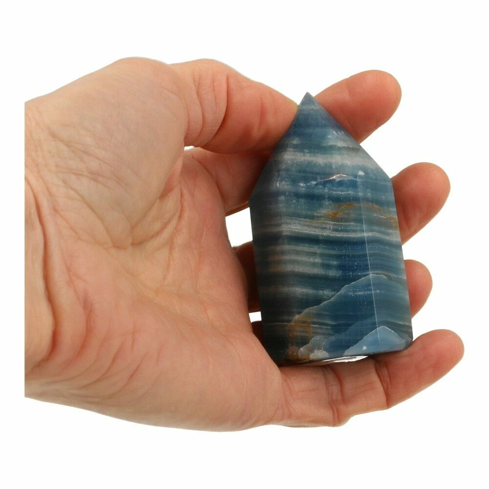 Prachtige donkere blauwe aragoniet toren van 73mm hoog uit Mexico. De spirituele naam voor deze blauwe aragoniet is lemurian aquatine calciet, maar feitelijk is het hele mooie blauwe aragoniet! Fraaie gepolijste toren met de gelaagde structuur van aragoniet. De basis is ongeveer 33 x 35mm. Je ontvangt deze lemurian aquatine calciet toren van de foto.