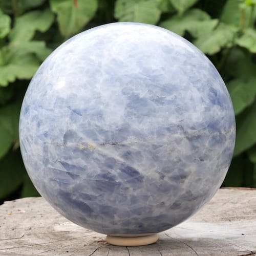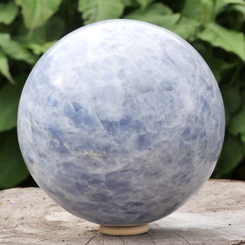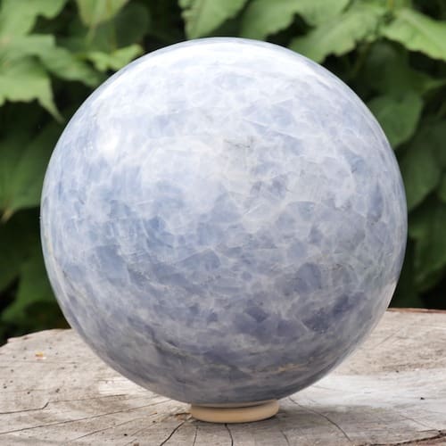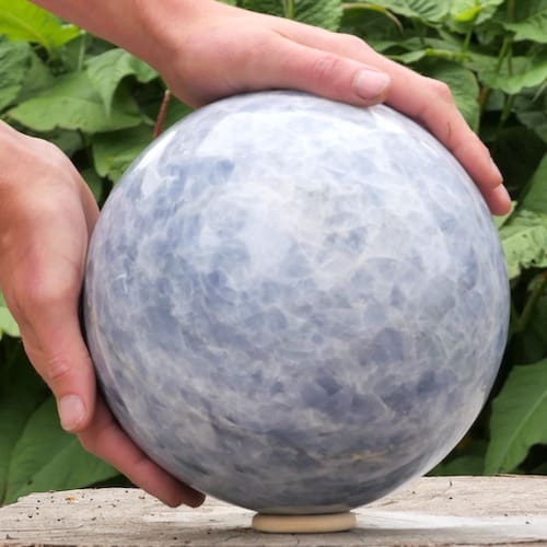 Fijne zeer grote blauwe calciet bol XXL met een diameter van circa 23cm en een gewicht van 16,9 kg! Je ontvangt deze blauwe calciet bol van de foto met een houten ring. Een fijne bol die rust, optimisme en lekker jezelf zijn uitstraalt. We zijn benieuwd welke ruimte deze bijzondere bol mag vullen!