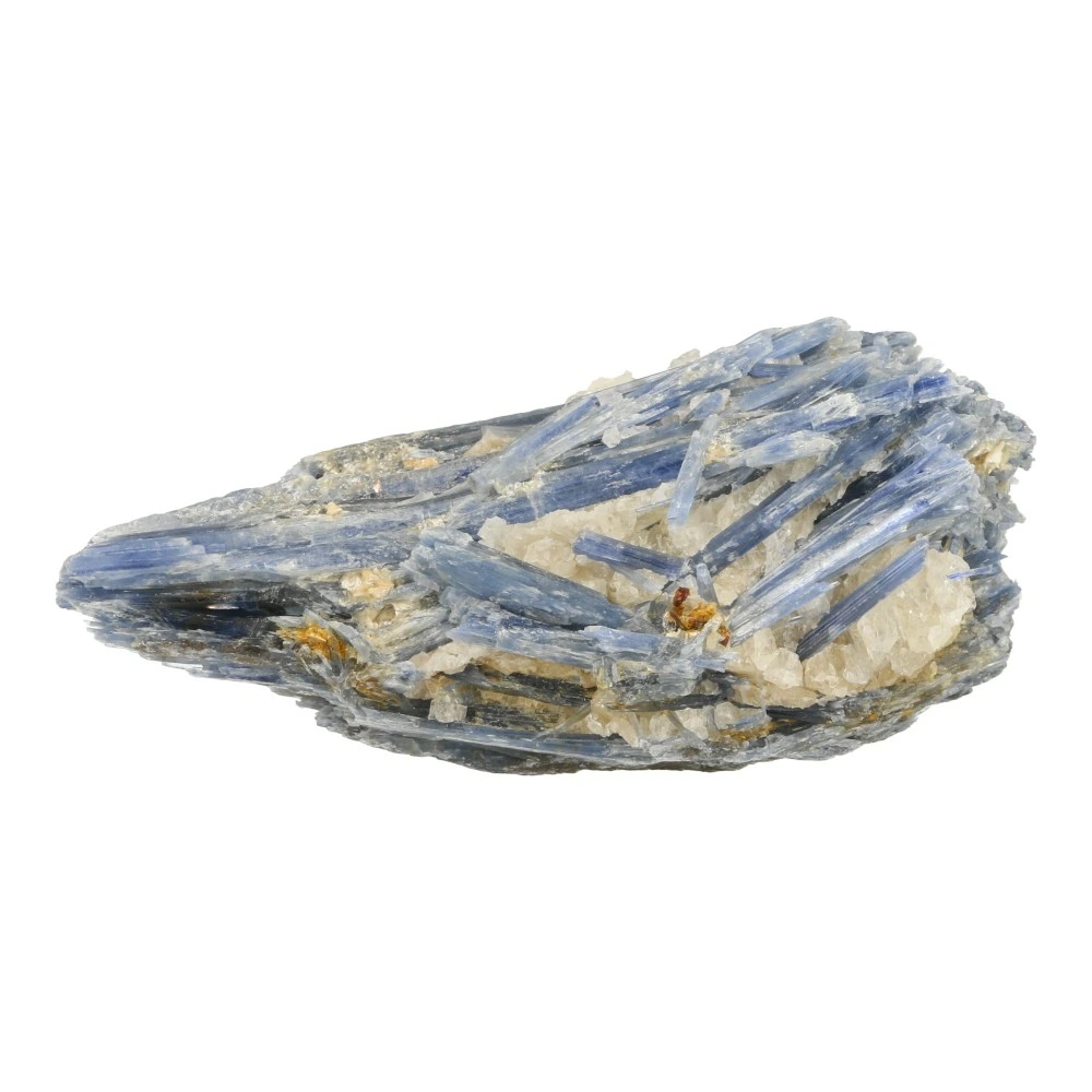 Mooie blauwe kyaniet ruw in kwarts uit Brazilië. Dit stuk blauwe kyaniet ruw heeft allerlei kristallen die in verschillende richtingen groeien. De afmeting van dit fijne stuk is ongeveer 11cm lang, 5,3cm breed en 4,8cm hoog. Je ontvangt de blauwe kyaniet van de foto.