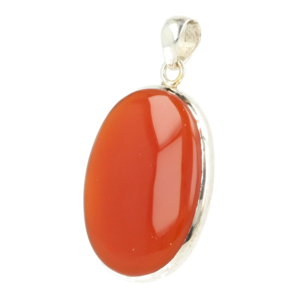 Fraai glad gepolijste carneool gevat in juwelierskwaliteit 925 sterling zilver. Carneool is een oranje tot roodkleurige variëteit van chalcedoon. Je ontvangt de carneool hanger in zilver van de foto. De afmeting van de carneool steen in de hanger is ongeveer 35mm hoog en 26mm breed.