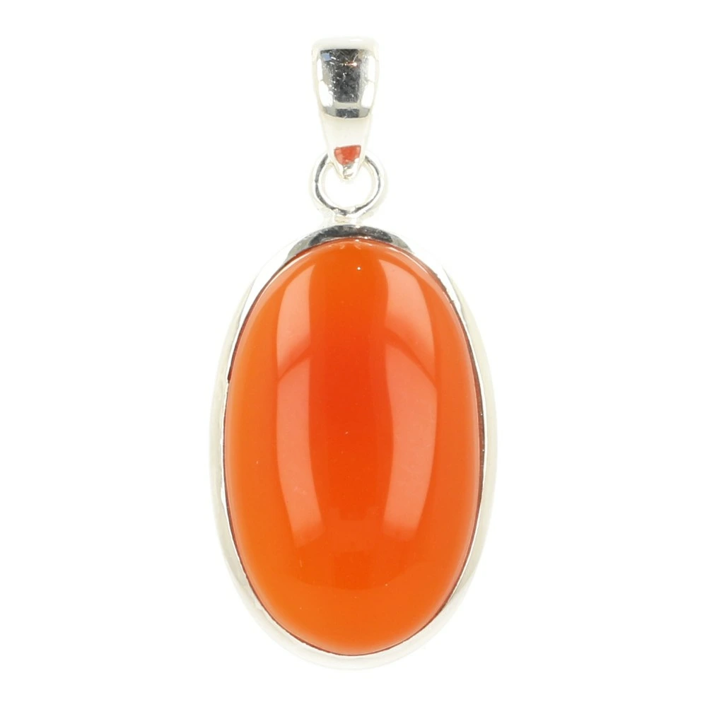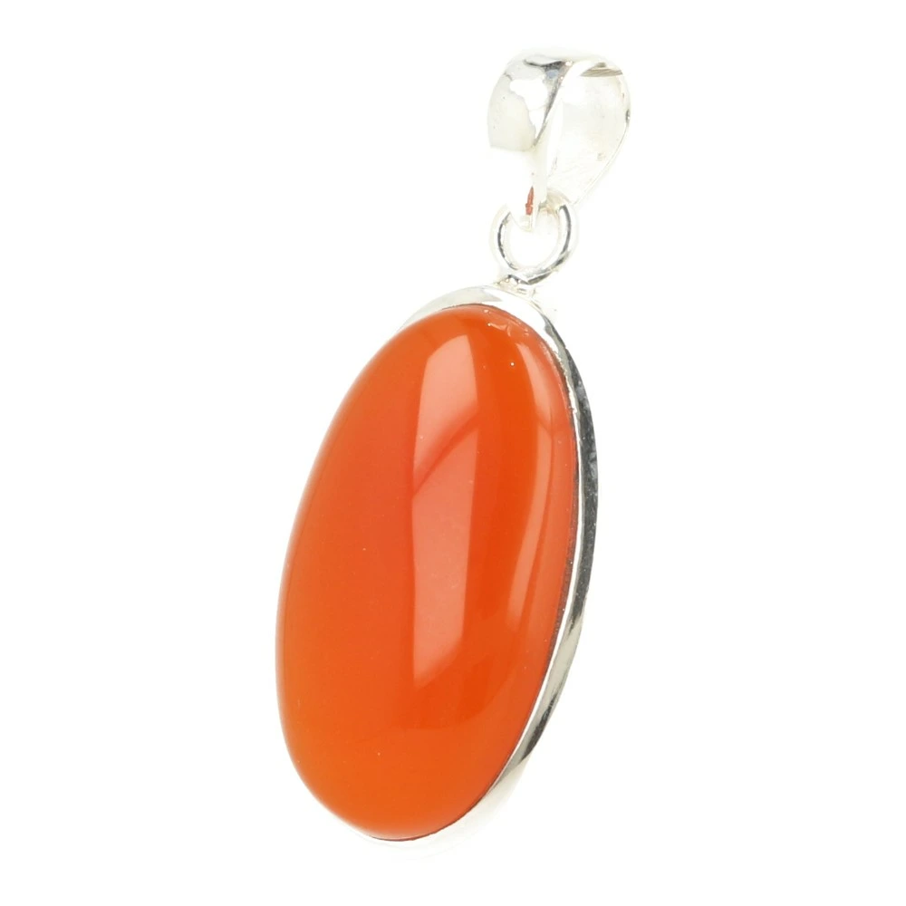 Fraai glad gepolijste carneool gevat in juwelierskwaliteit 925 sterling zilver. Carneool is een oranje tot roodkleurige variëteit van chalcedoon. Je ontvangt de carneool hanger in zilver van de foto. De afmeting van de carneool steen in de hanger is ongeveer 35mm hoog en 26mm breed.