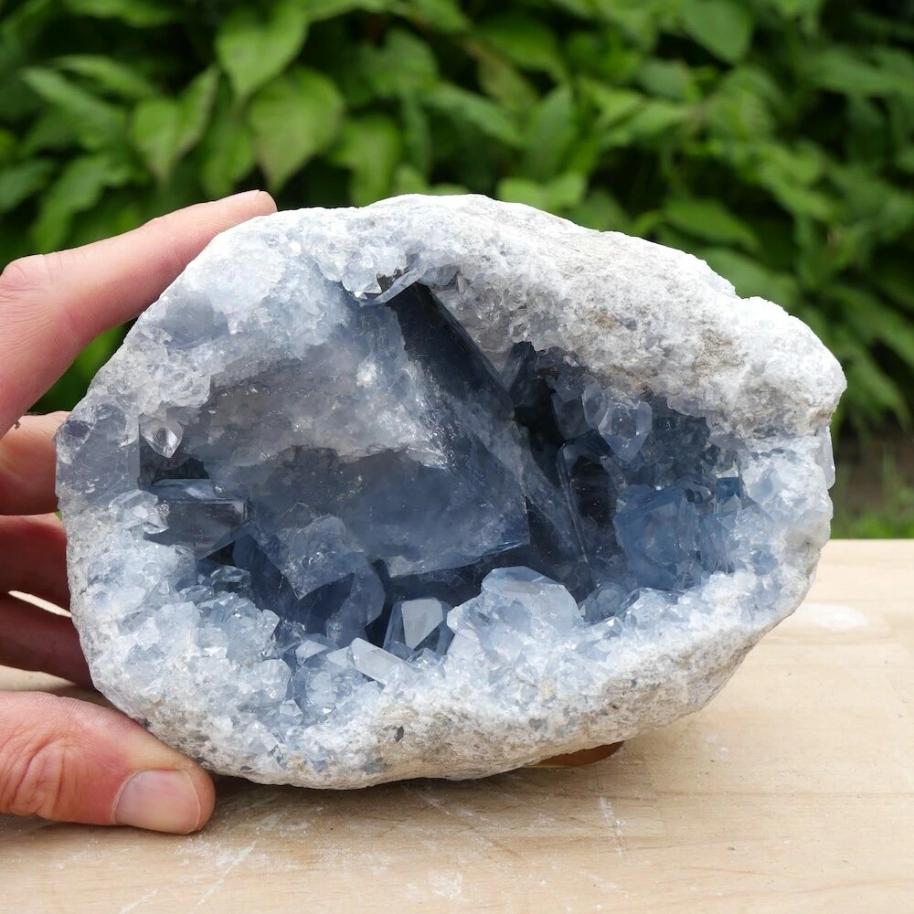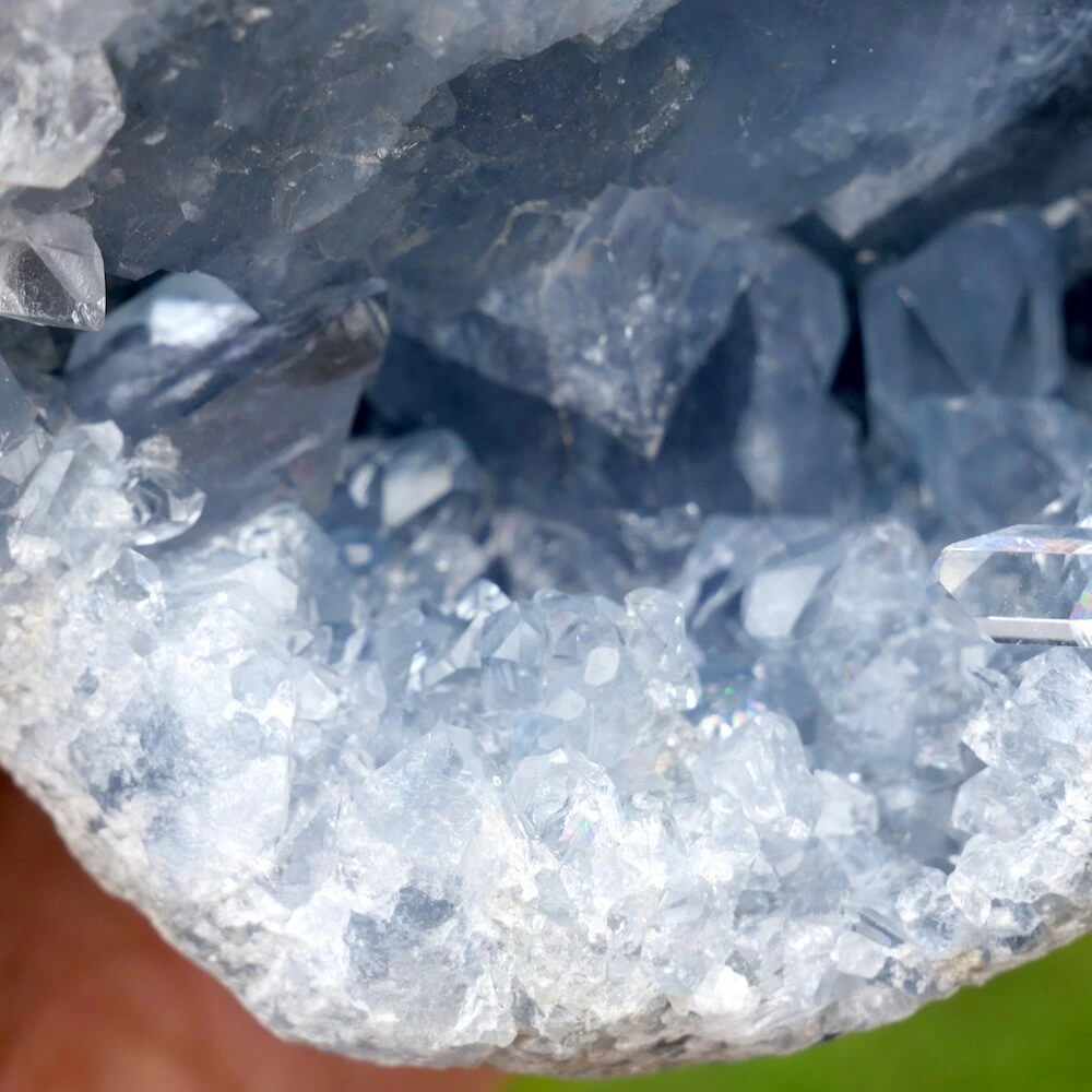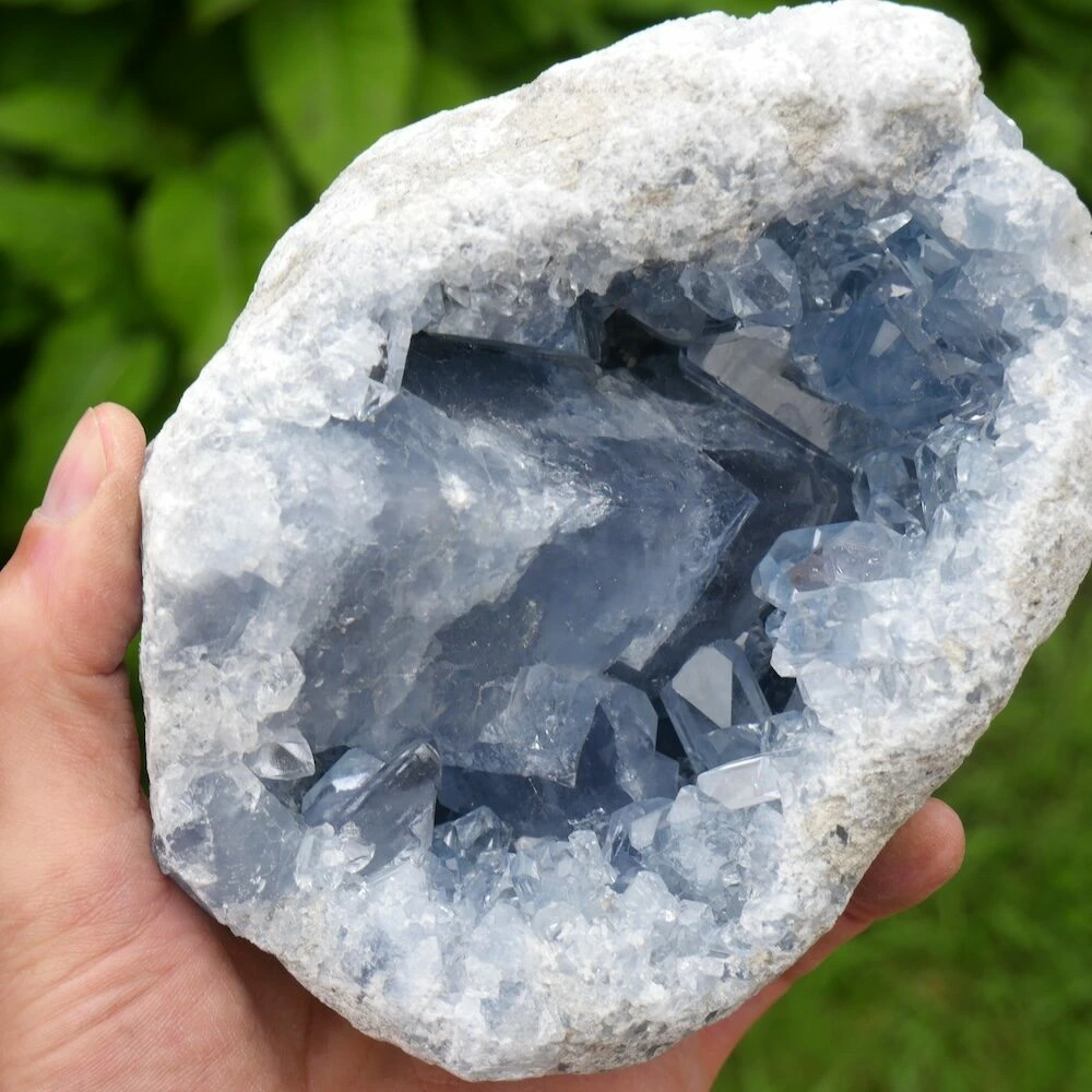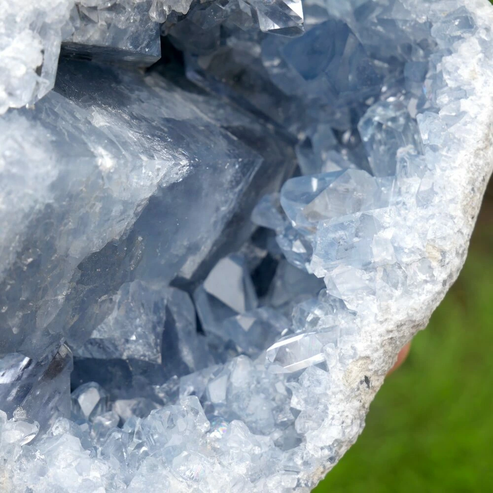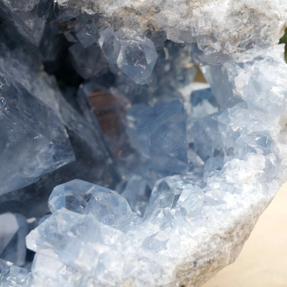 Topkwaliteit celestien geode met heldere kristallen en een gewicht van 3,2kg uit Madagaskar, hoge kwaliteit zonder beschadigingen. De energie van dit stuk is helder en stevig, perfect voor meer gevoelige mensen. Ze nodigt je uit om de subtiele energie te ontdekken, terwijl je met beide benen op de grond blijft staan. Ze helpt je om vanuit je lichaam de informatie van je gidsen en de engelenwereld te ontvangen. Deze fraaie geode kan mooi zelfstandig staan, bestel een standaard medium om deze geode op andere manieren neer te zetten.