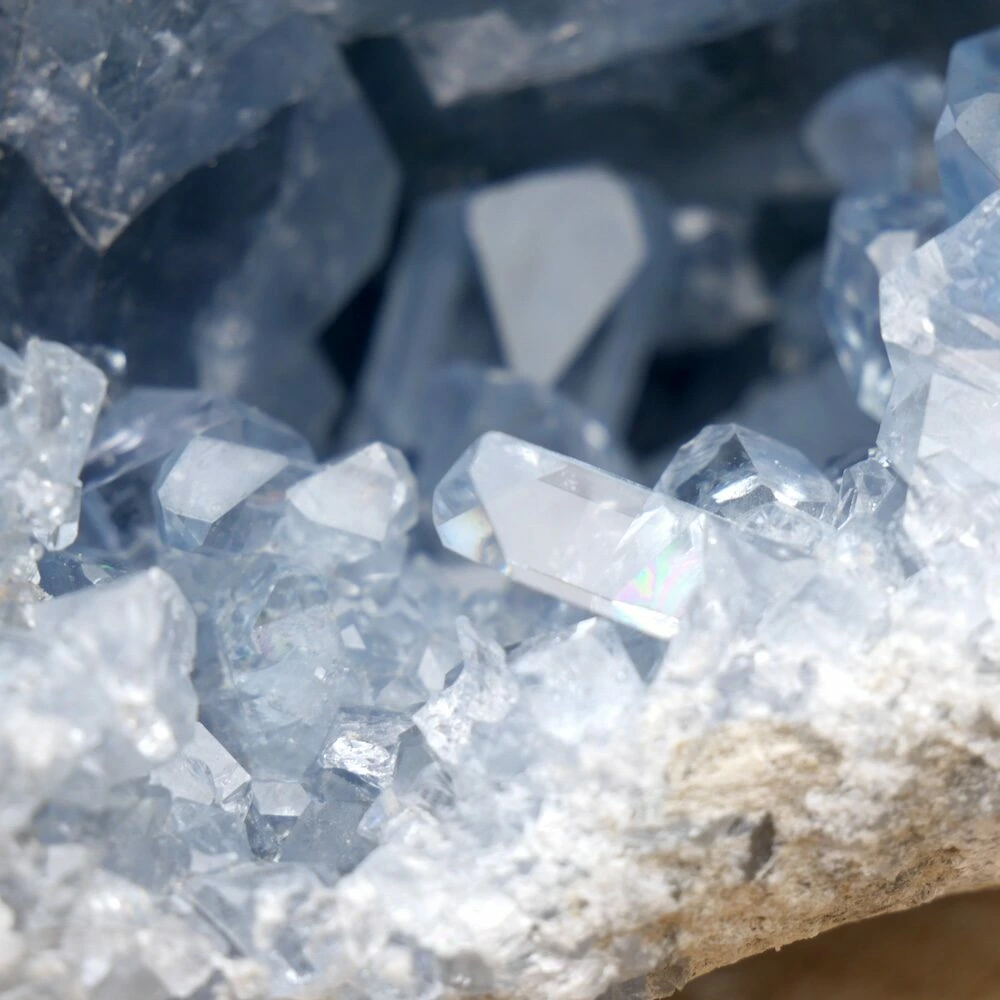 Celestien heeft een milde en positieve energie en nodigt je bewustzijn uit om zich te verruimen. Het wordt ook wel de engelensteen genoemd en dat is niet voor niets. Het is een van de beste stenen om je communicatie met engelen te vergemakkelijken en helpt je om je op de engelen energie af te stemmen.