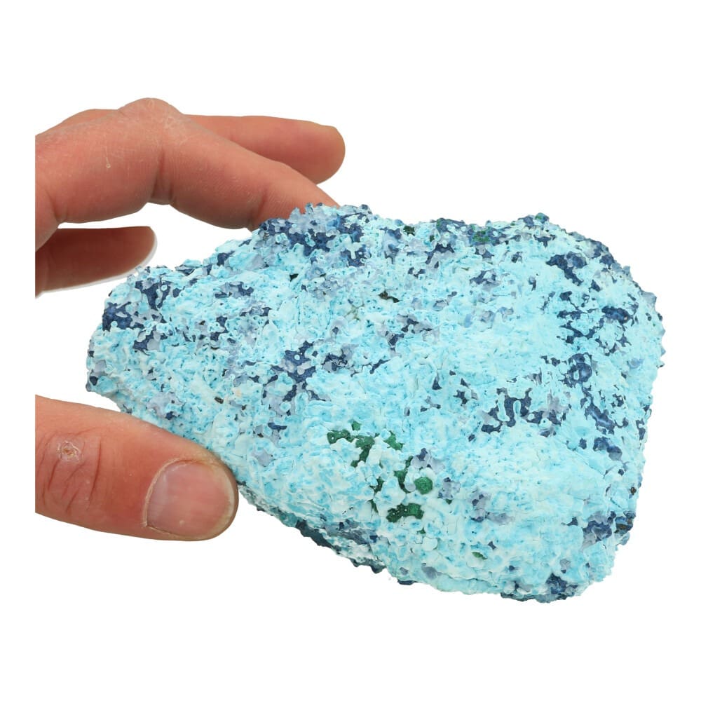 Prachtige chrysocolla ruw groot met een afmeting van circa 12,5cm breed, 9cm diep en 8,5cm hoog uit Democratische Republiek Congo. Dit fraaie stuk met bizar heldere kleuren is puur natuur en bevat ook kleine stukjes malachiet en azuriet. Uniek stuk!