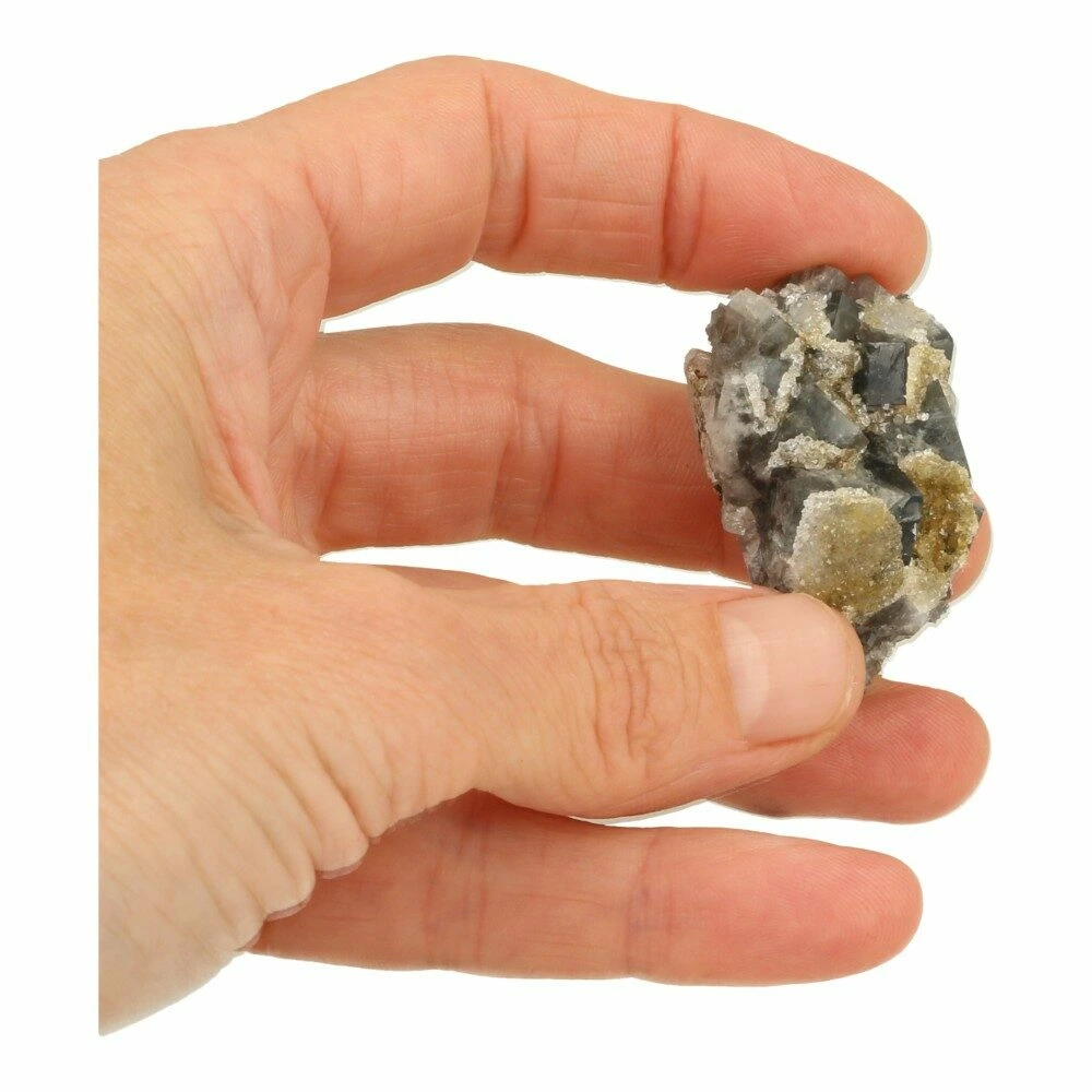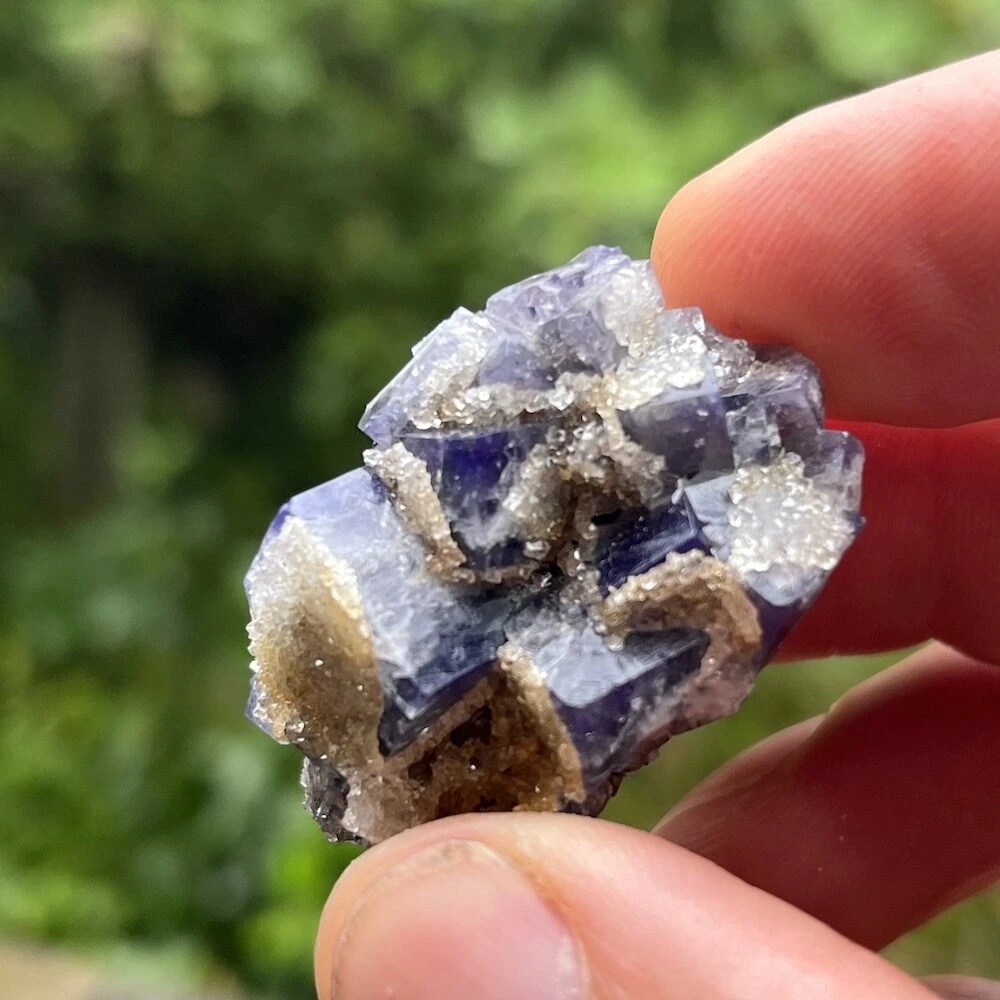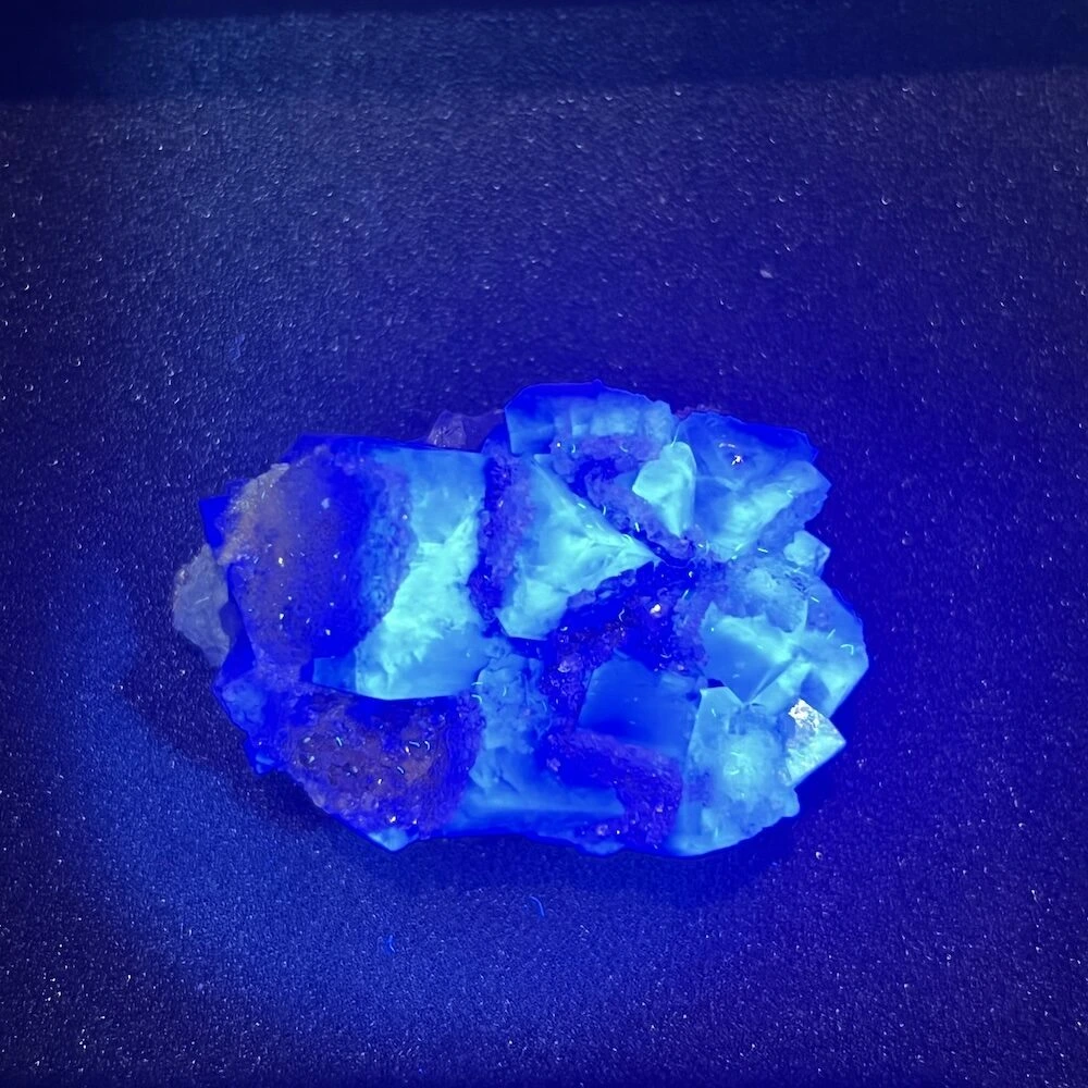 Prachtige grijs-paarse ruwe fluoriet kristallen uit Engeland. Naast de uitzonderlijke kwaliteit van de fluorietkristallen zijn deze daglicht actief. Dat betekent dat ze onder invloed van daglicht een blauwe gloed krijgen. En op UV-licht reageren ze helemaal spectaculair. Deze fluoriet komt uit de Milky Way Pocket uit de Sutcliffe Vain van de Diana Maria Mine in Frosterley, Weardale, Engeland. De afmeting van dit fraaie stuk is ongeveer 40x26x20mm. Van een afstandje lijkt de fluoriet bijna zwart, van dichtbij zie je dat het transparant paars-grijs is. En buiten met een donkerblauwe gloed. Bijzonder en zeldzaam materiaal, direct van de mijn in Engeland. Je ontvangt het ruwe daglichtfluoriet cluster van de foto.