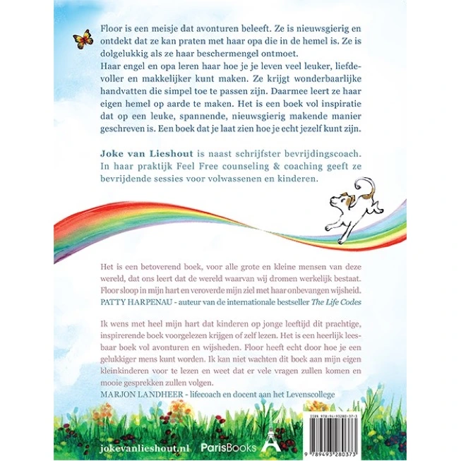 ‘Ik wens met heel mijn hart dat kinderen op jonge leeftijd dit prachtige inspirerende boek voorgelezen krijgen of zelf lezen. Het is een heerlijk leesbaar boek vol avonturen en wijsheden. Floor heeft echt door hoe je een gelukkiger mens kunt worden. Ik kan niet wachten dit boek aan mijn eigen kleinkinderen voor te lezen en weet dat er vele vragen zullen komen en mooie gesprekken zullen volgen.’ MARJON LANDHEER – lifecoach en docent aan het Levenscollege