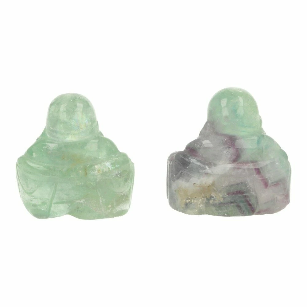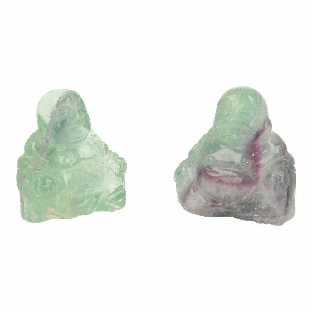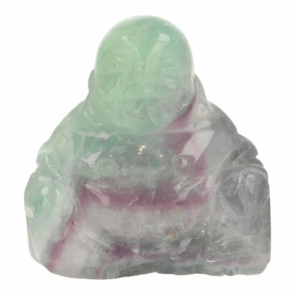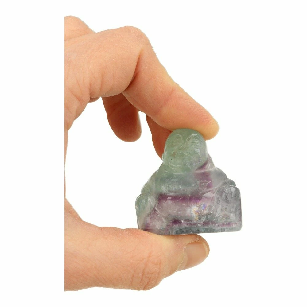 Leuke paars-groene fluoriet boeddha van ongeveer 4cm hoog, 4cm breed en 2cm diep. Je ontvangt een soortgelijke fluoriet boeddha als op de foto.