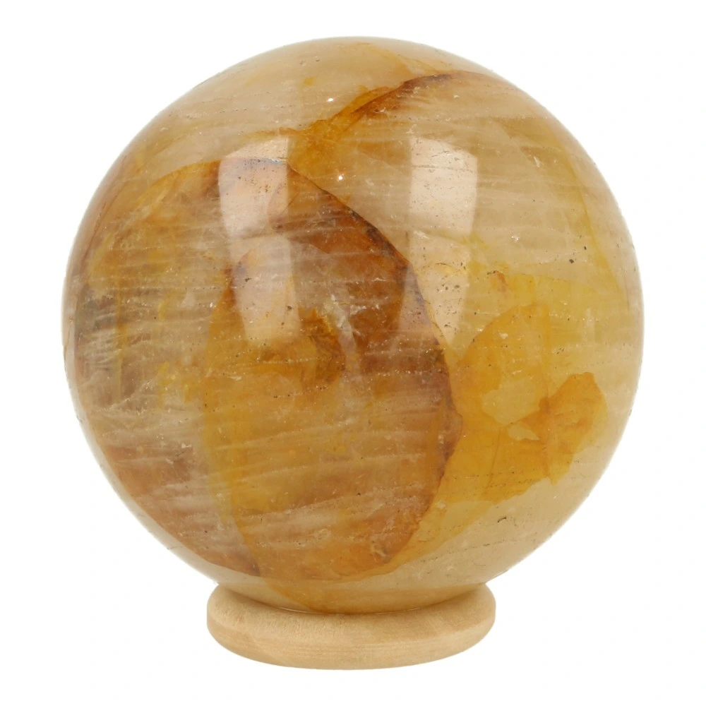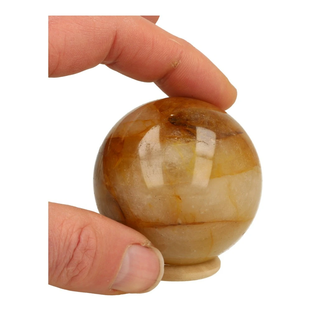 Mooi formaat golden healer bol met een diameter van 57mm in gele uitvoering. Je ontvangt de bol van de foto met een houten ringetje.