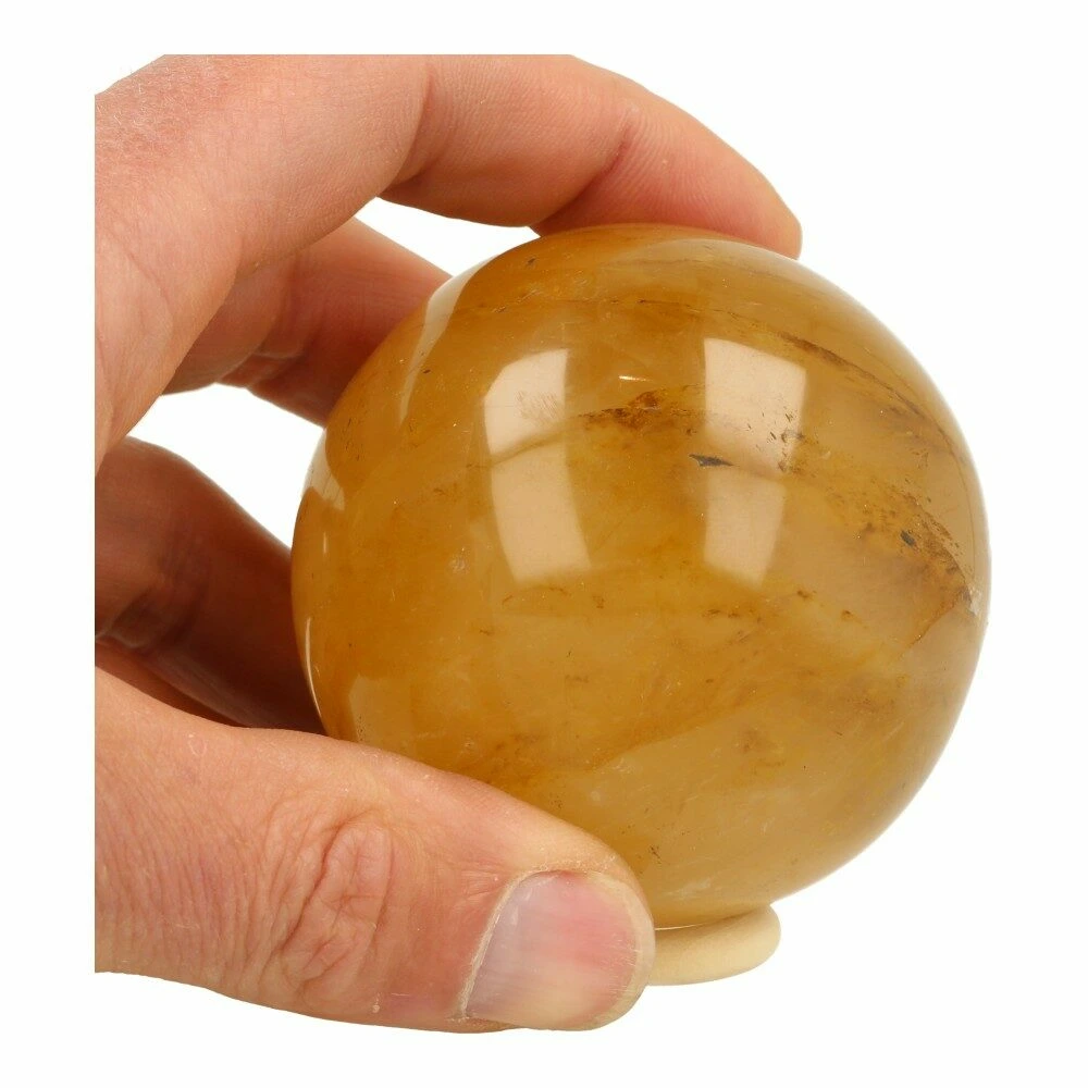 Mooi formaat golden healer bol met een diameter van 78mm in gele uitvoering. Je ontvangt de bol van de foto met een houten ringetje. We hebben meerdere bollen in voorraad, dus neem contact met ons op als je iets anders zoekt.