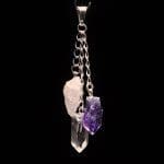 Prachtige gouden driehoek hanger met een stukje bergkristal, amethist en rozenkwarts, met verzilverde schakels aan elkaar verbonden. Een prachtig sieraad dat je goed in je energie houdt, je beschermt en ook nog eens de liefde voor jezelf versterkt. Je ontvangt deze gouden driehoek hanger zonder koord. Deze hanger kan prima als sieraad gedragen worden aan een zilveren ketting.