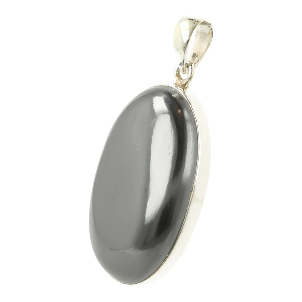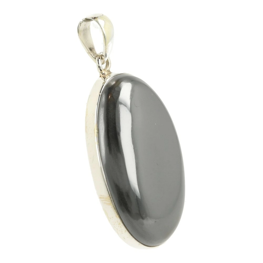 Glimmende grijs-metalen hematiet hanger in zilver ‘nr3’. Deze fraai gepolijste hematiet is gevat in juwelierskwaliteit 925 sterling zilver. De afmeting van de hematiet steen in de hanger is ongeveer 36mm hoog en 23mm breed. Je ontvangt de hematiet hanger in zilver van de foto.