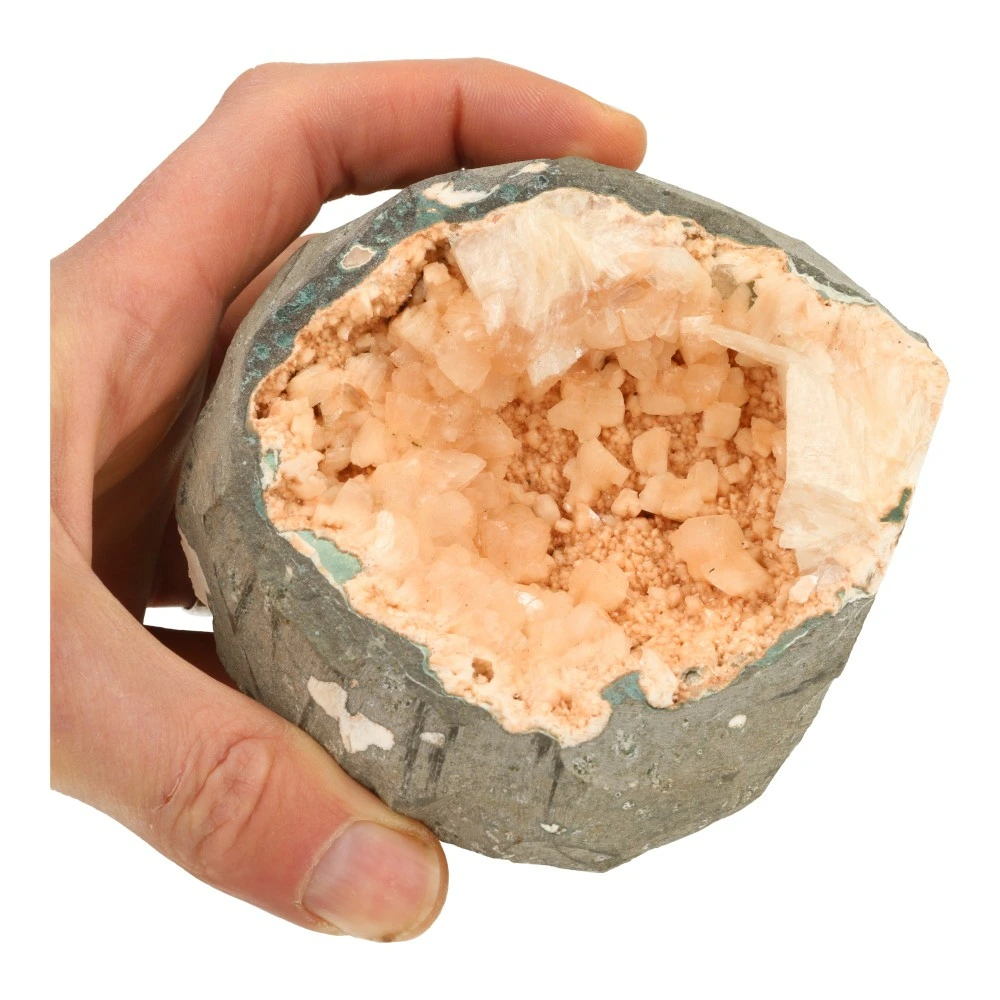 Fraai wit met roze heulandiet geode met mooie vorm en fijne kristallen. Deze heulandiet geode komt uit India. De afmeting van de heulandiet geode is ongeveer 11cm breed, 7,5cm diep en 10cm hoog. De heulandiet geode kan zowel rechtop staan als met de opening naar boven liggen. Naast heulandiet bevat deze geode een aantal roze stilbiet kristallen. Je ontvangt de heulandiet geode van de foto.