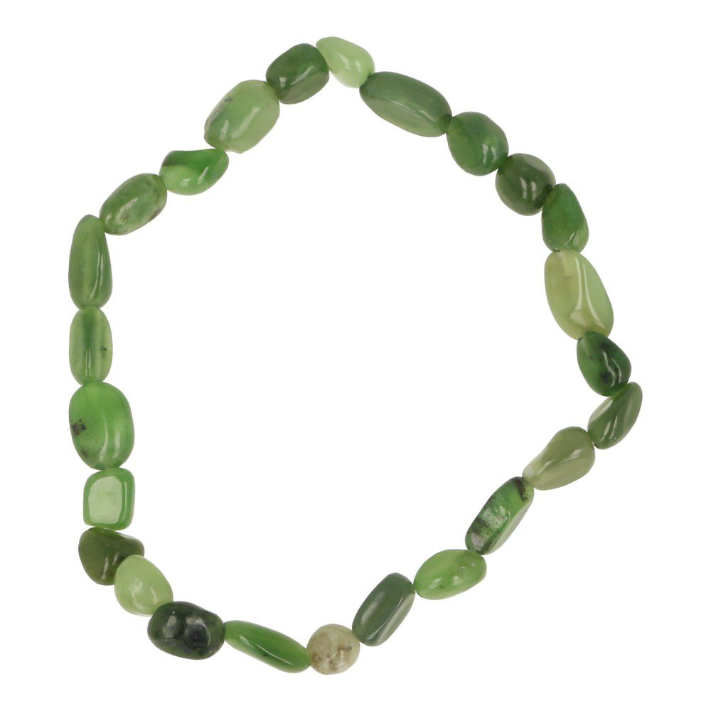 Mooie jade nefriet armband van gepolijste steentjes (split) die in de lengte zijn geboord. Deze jade nefriet armband split plat heeft een lente die past bij een polsomtrek van 16-17cm en is daardoor vooral geschikt voor vrouwen of mannen met een gemiddelde pols. Je ontvangt een soortgelijke jade nefriet armband als op de foto. De jade van deze armband komt uit Canada.