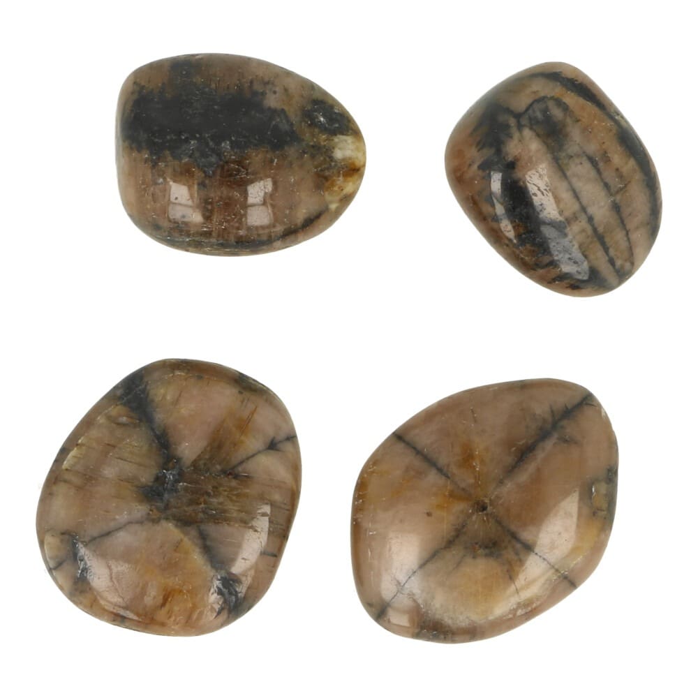 Fijne gladde knuffelsteen in chiastoliet, ook wel kruissteen genoemd vanwege de kruisvormige tekening. De afmeting van de knuffelstenen varieert en is ongeveer 3-3,5 cm aan de langste zijde. Je ontvangt een soortgelijke kruissteen knuffelsteen als op de foto.