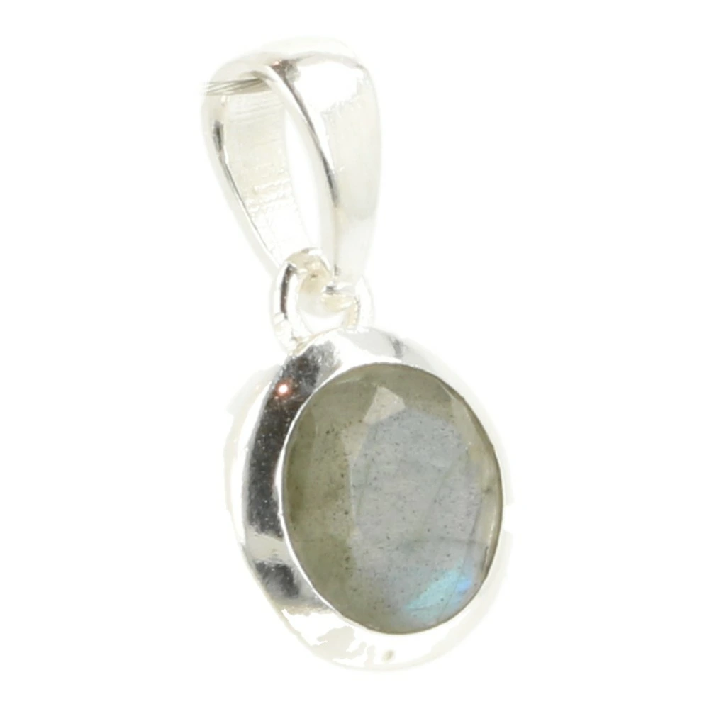 Deze prachtig klein formaat labradoriet hanger in zilver rond 8mm is een sieraad om je nek. De facet geslepen labradoriet is gevat in juwelierskwaliteit 925 sterling zilver heeft een fraaie blauwe gloed. De diameter van de labradoriet steen in de hanger is circa 8mm, een klein en fijn hangertje. Je ontvangt een soortgelijke labradoriet hanger rond in zilver als op de foto, de kwaliteit is zeer gelijkwaardig. De blauwgroene flash is moeilijk op de foto te zetten, iedere hanger heeft een fraaie glans.