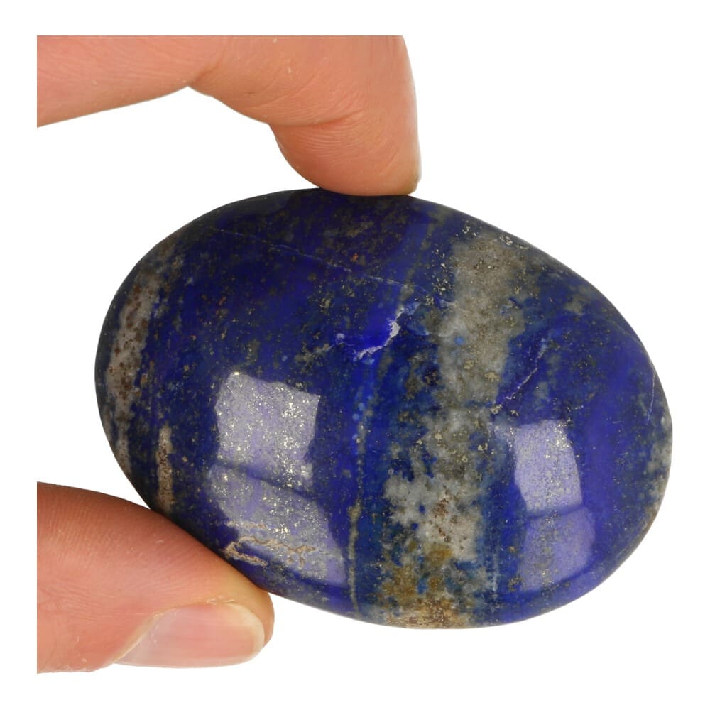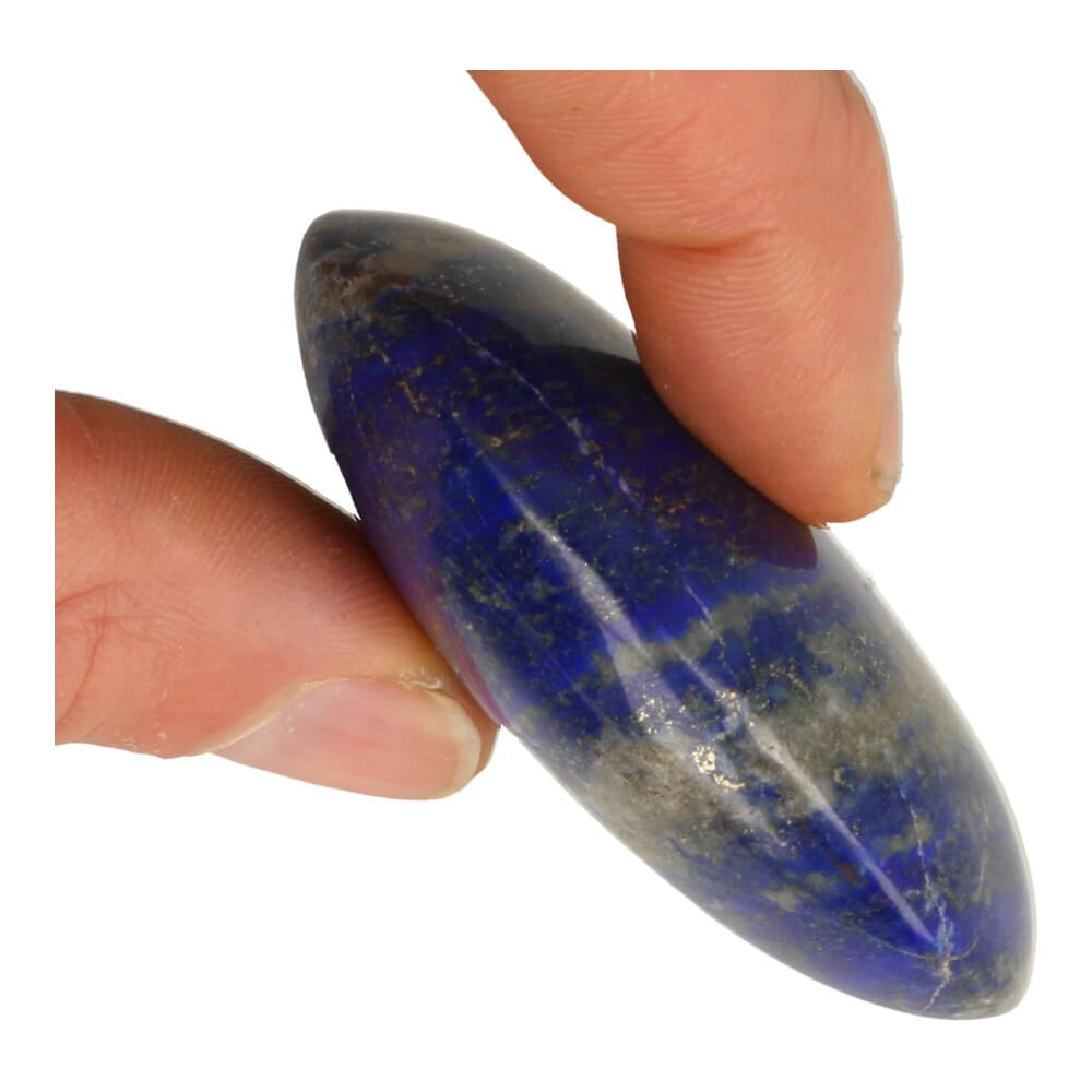 Mooie kwaliteit diepblauwe lapis lazuli knuffelsteen groot met pyriet insluitsels. Iedere steen is uniek, we zoeken de beste steen voor je uit bij je bestelling. De afmeting is ongeveer 6,5-7,5 cm lang, 4,5-5,5 cm breed en 2,5-3cm dik.