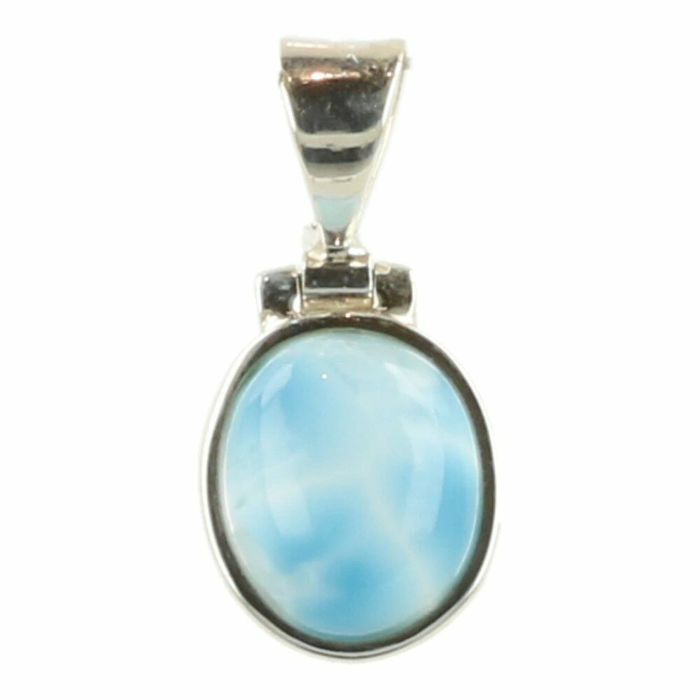 Mooie fijne larimar hanger in zilver uit de Dominicaanse Republiek. Deze fraaie larimar steen in de hanger heeft een afmeting van 10mm hoog en 8mm breed. Deze larimar hanger in zilver is gemaakt van 925 sterling zilver van juwelierskwaliteit. Je ontvangt de larimar hanger in zilver van de foto.