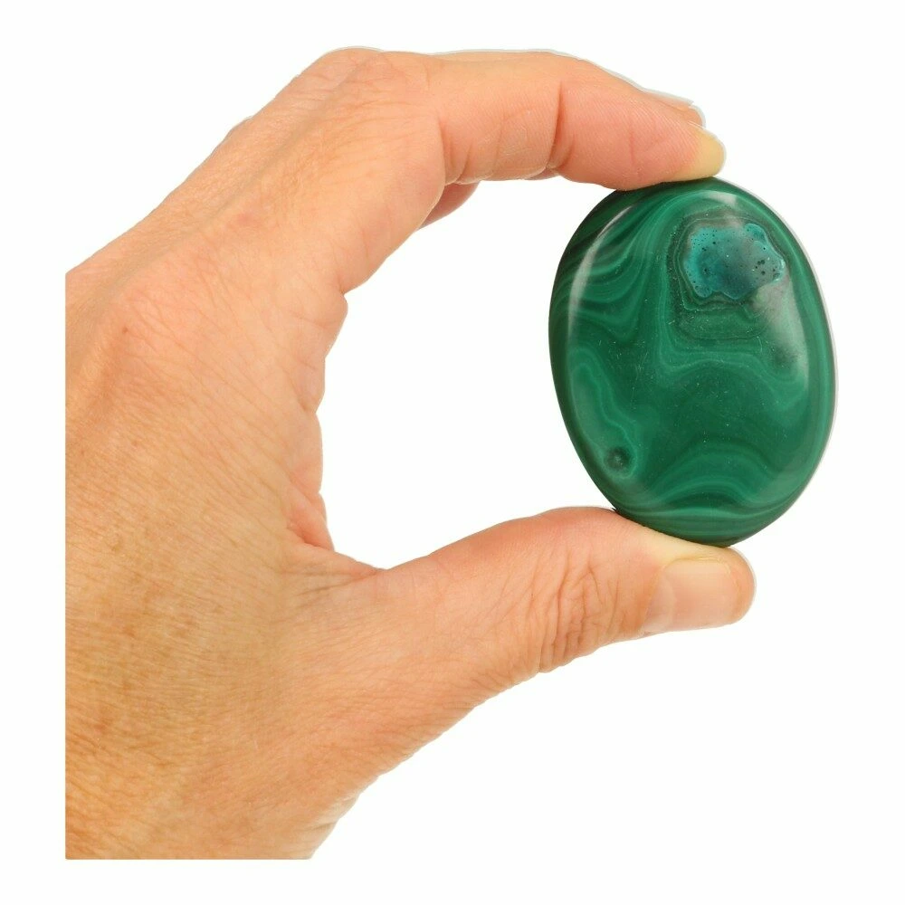 Malachiet is een van de belangrijkste beschermers tegen negatieve energie. Het doordringt het auraveld met positieve vibraties en sterkt de natuurlijke energetische afscherming. De energie die malachiet uitstraalt is heilzaam voor het hart en harmoniseert het hartchakra. Het is een steen die je helpt om emotioneel in evenwicht te blijven en vergroot het vermogen om te zien waar je eigen emotionele valkuilen liggen.