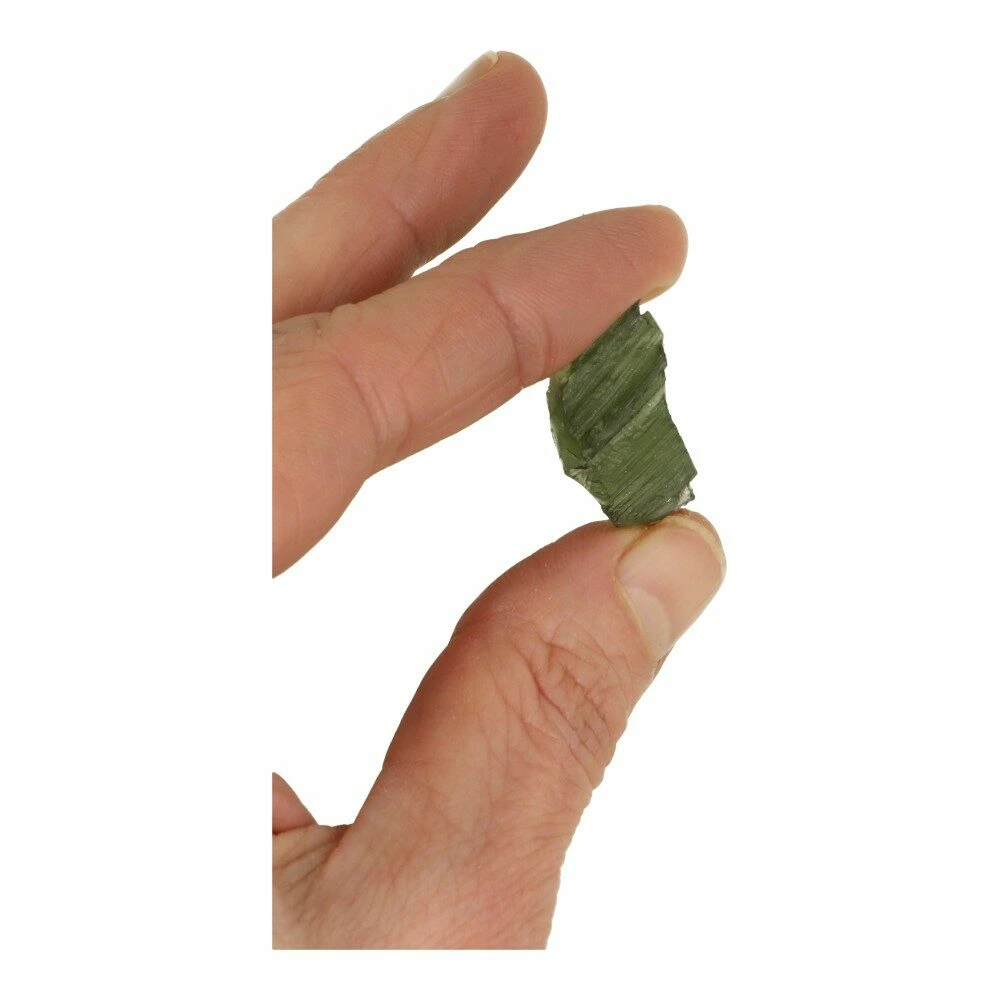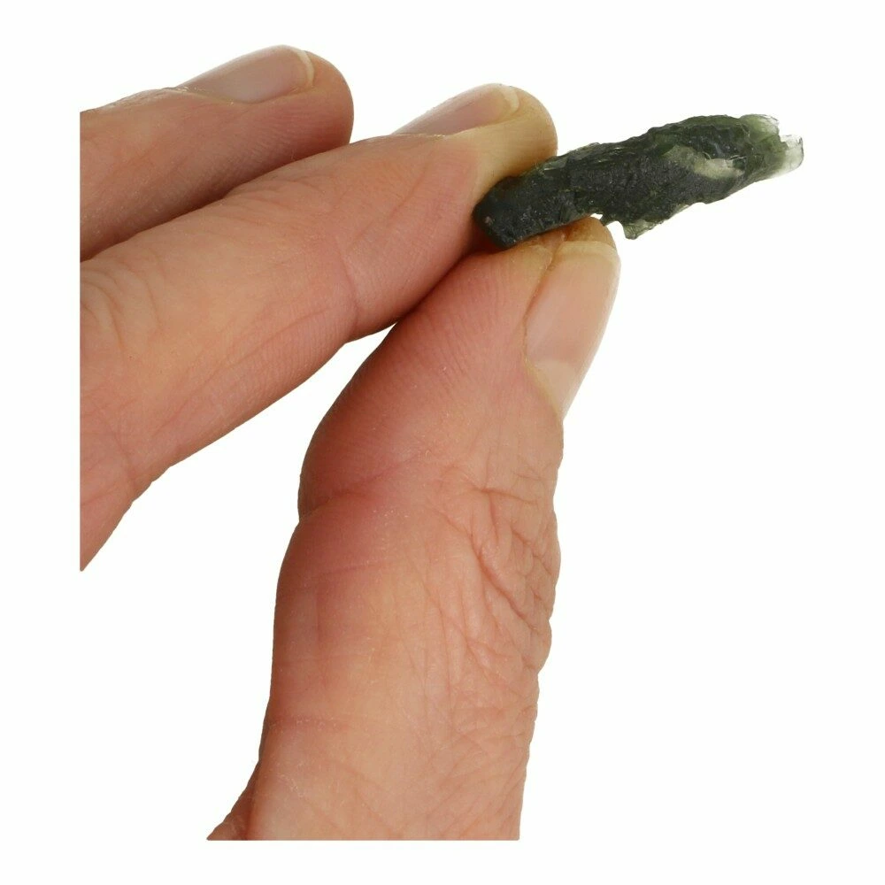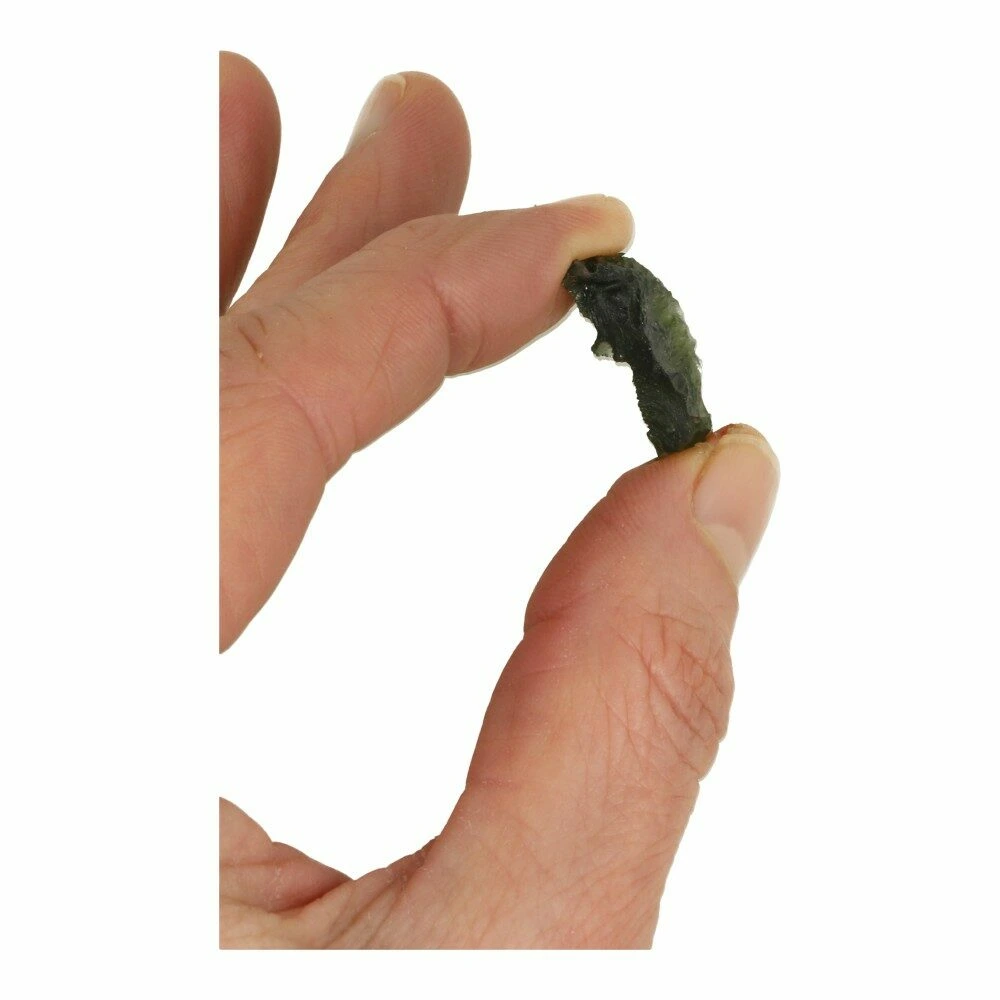 Mooi grillig en langwerpig gevormd stuk moldaviet ruw, direct uit Tsjechië. De afmetingen van dit unieke stukje moldaviet zijn ongeveer 33mm lang, 13mm breed en 10mm hoog.