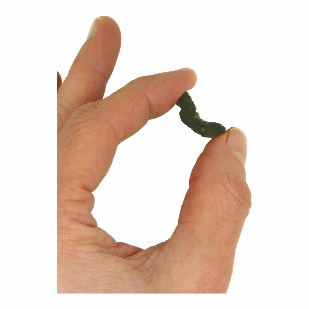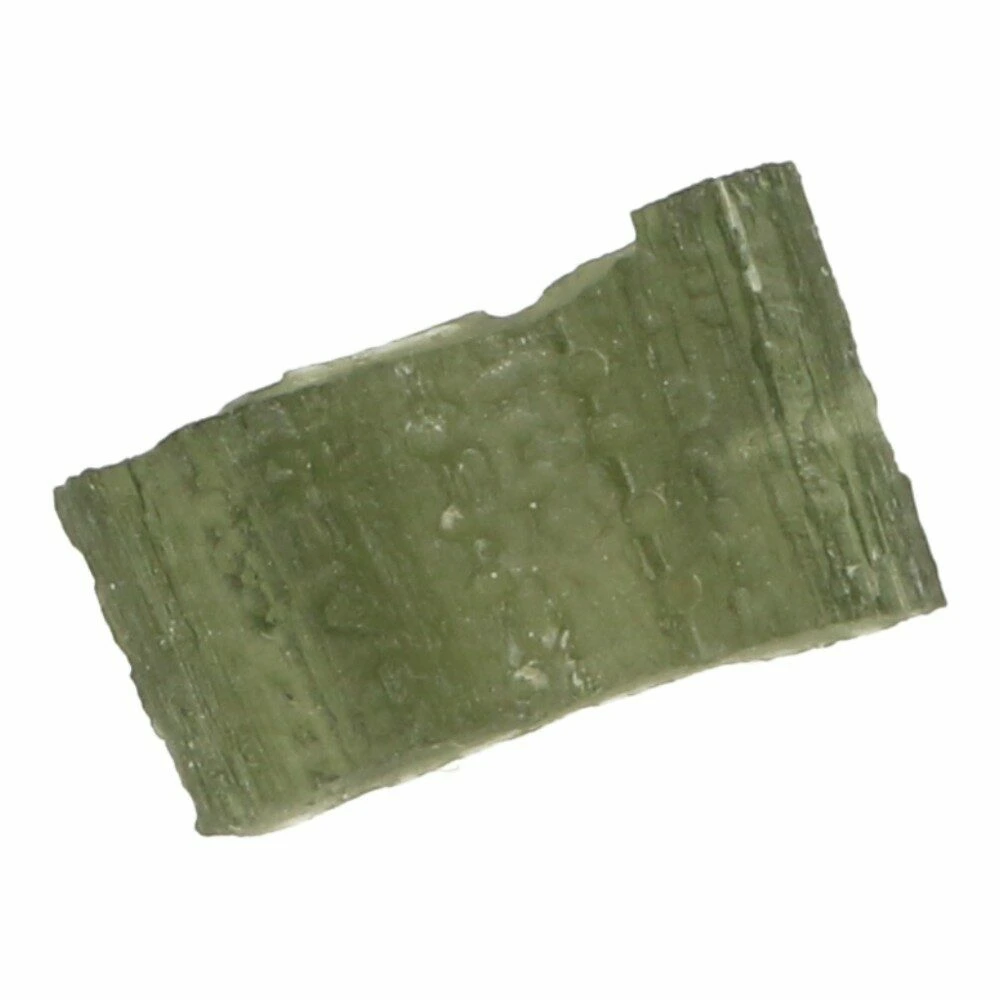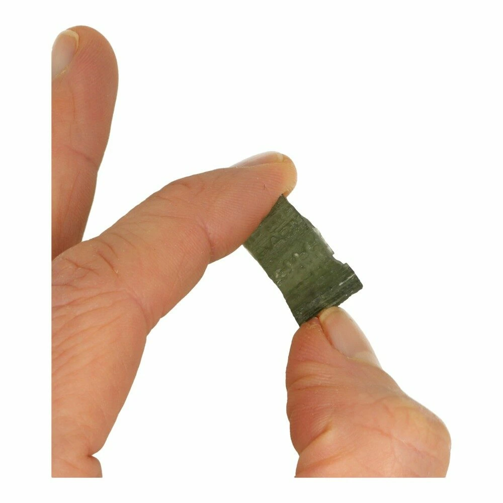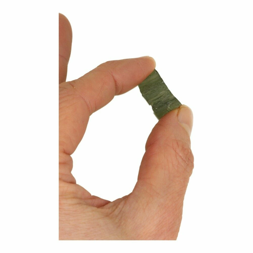 Mooi grillig en langwerpig gevormd stuk moldaviet ruw, direct uit Tsjechië. De afmetingen van dit unieke stukje moldaviet zijn ongeveer 33mm lang, 13mm breed en 10mm hoog.