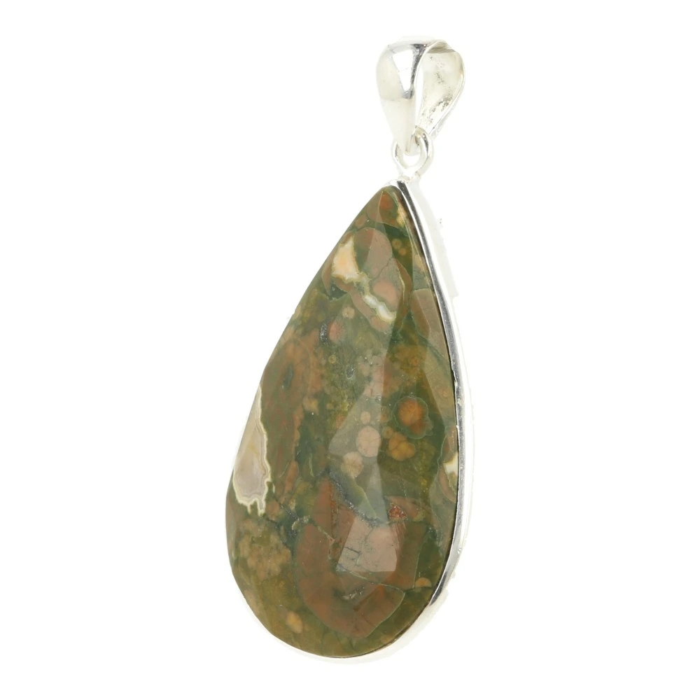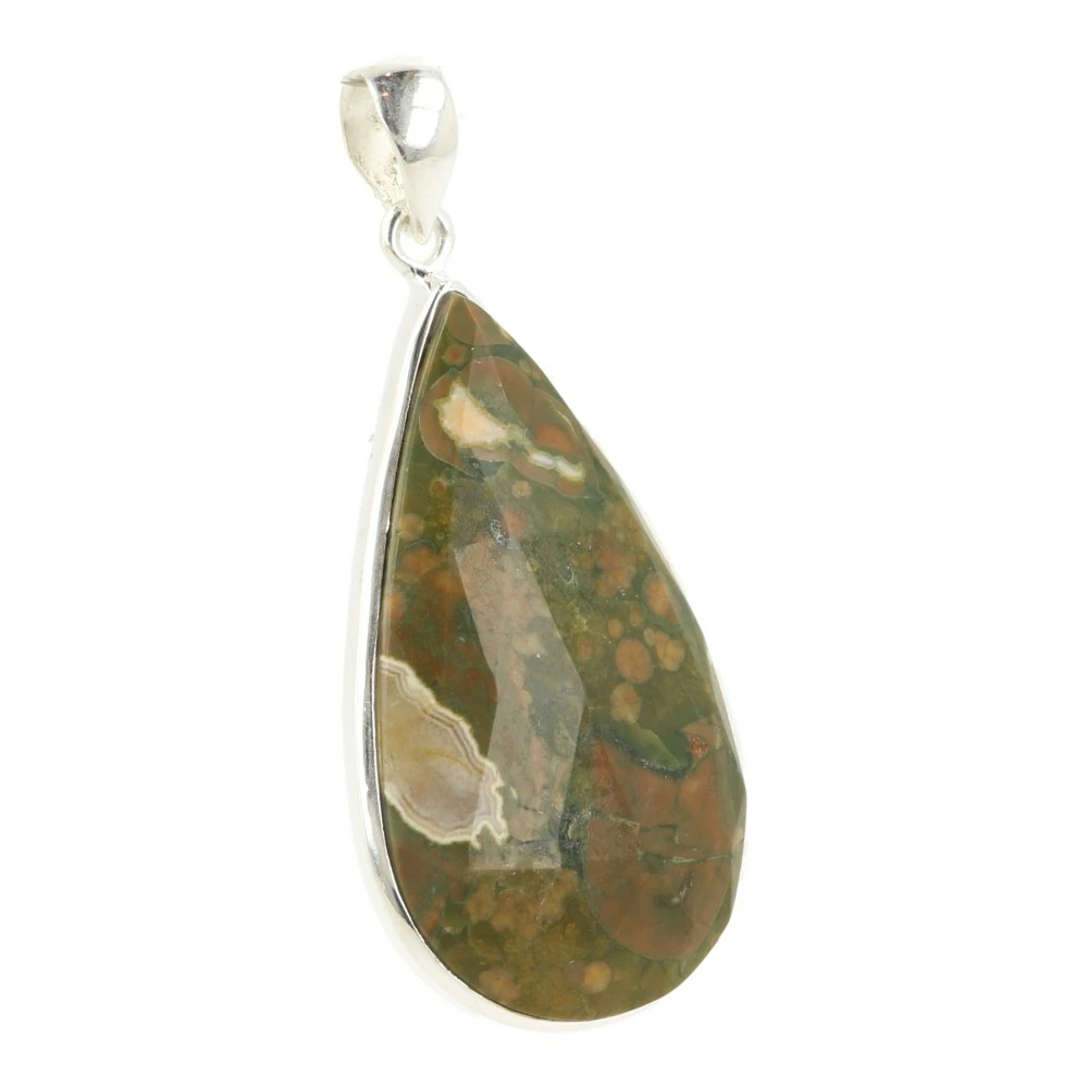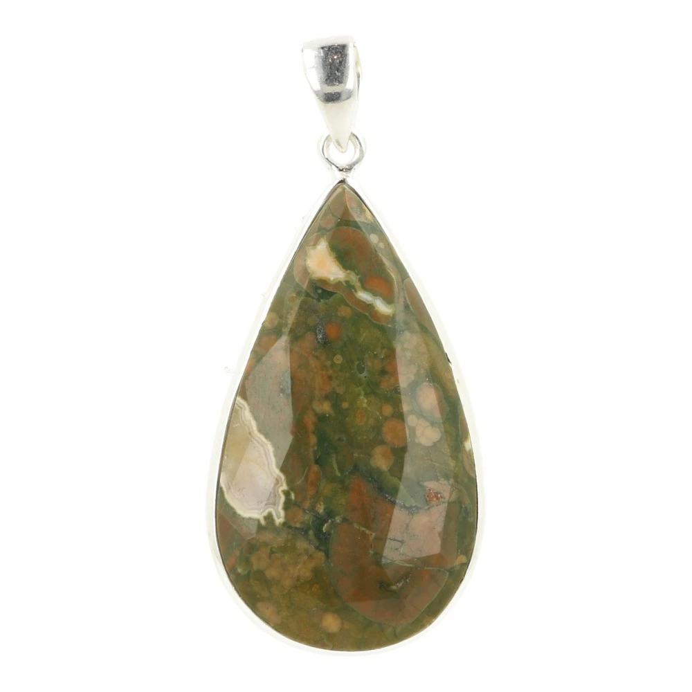 Mooie kwaliteit oceaan jaspis hanger in zilver, facet geslepen en in druppelvorm. Deze prachtige facet geslepen oceaan jaspis hanger is gezet in juwelierskwaliteit 925 sterling zilver. De afmeting van de oceaanjaspis steen in deze hanger is ongeveer 40mm hoog en 23mm breed. Je ontvangt de oceaanjaspis hanger in zilver van de foto.