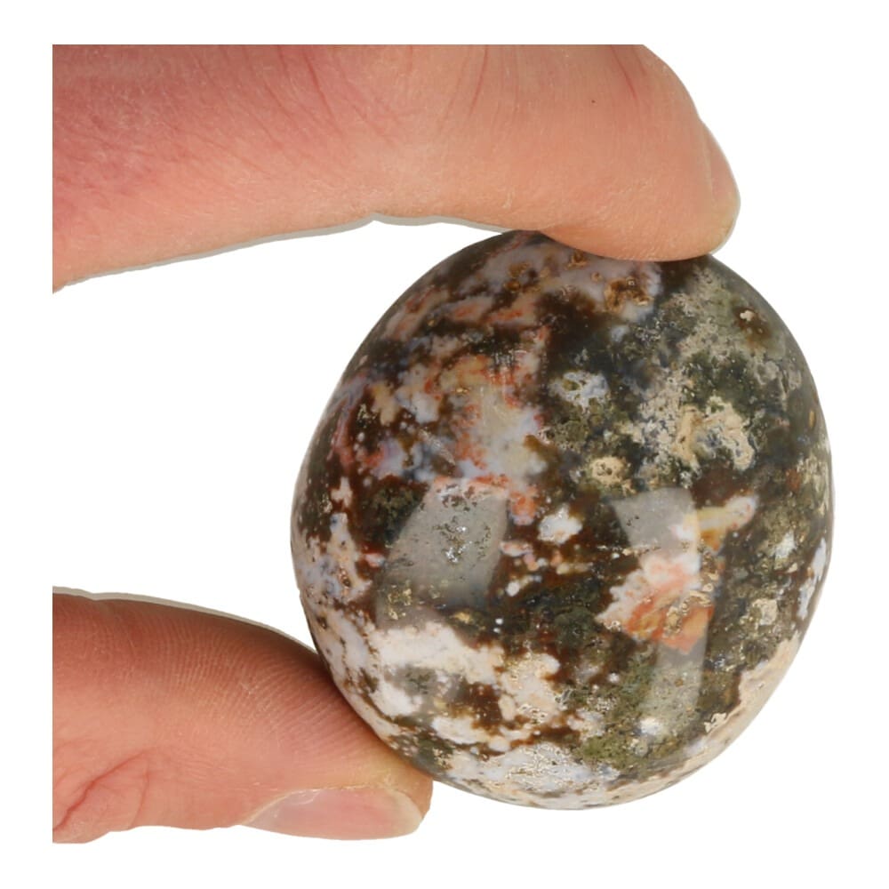 Mooi formaat oceaanjaspis knuffelsteen uit Madagaskar. Iedere steen is uniek in afmeting en tekening, dus we zoeken de meest optimale voor je uit bij je bestelling. Wil je weten welke oceaanjaspis knuffelsteen je ontvangt? Laat het weten bij je bestelling en we sturen je een foto. Mooie gepolijste knuffelstenen van circa 5-6cm lang, 4-5cm breed en 2,5-3cm dik.