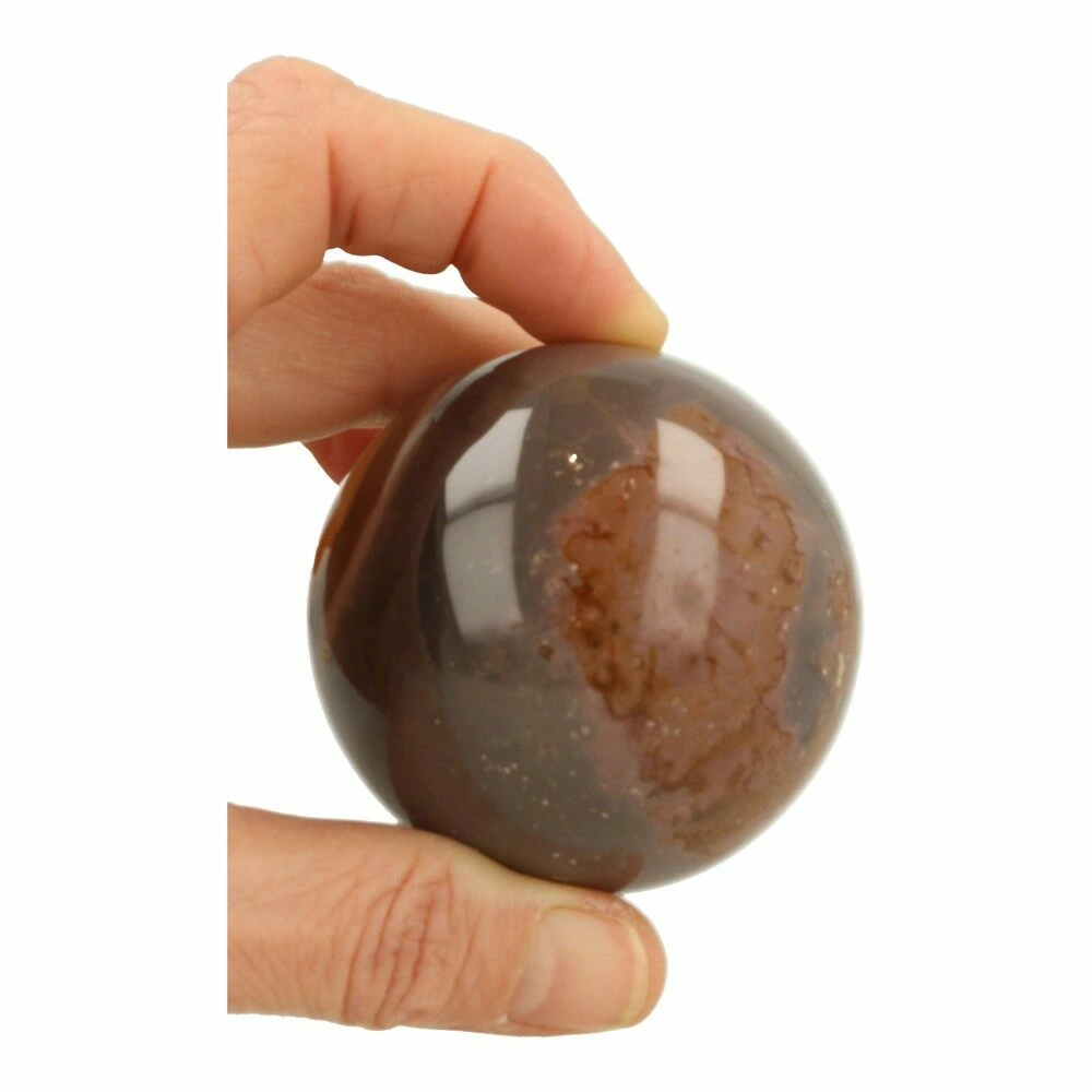 Mooie polychroom jaspis bol met een diameter van circa 6cm. Deze polychroom jaspis bol is een kunstwerk op zichzelf met een unieke tekening. Je ontvangt de polychroomjaspis bol van de foto met ringetje.
