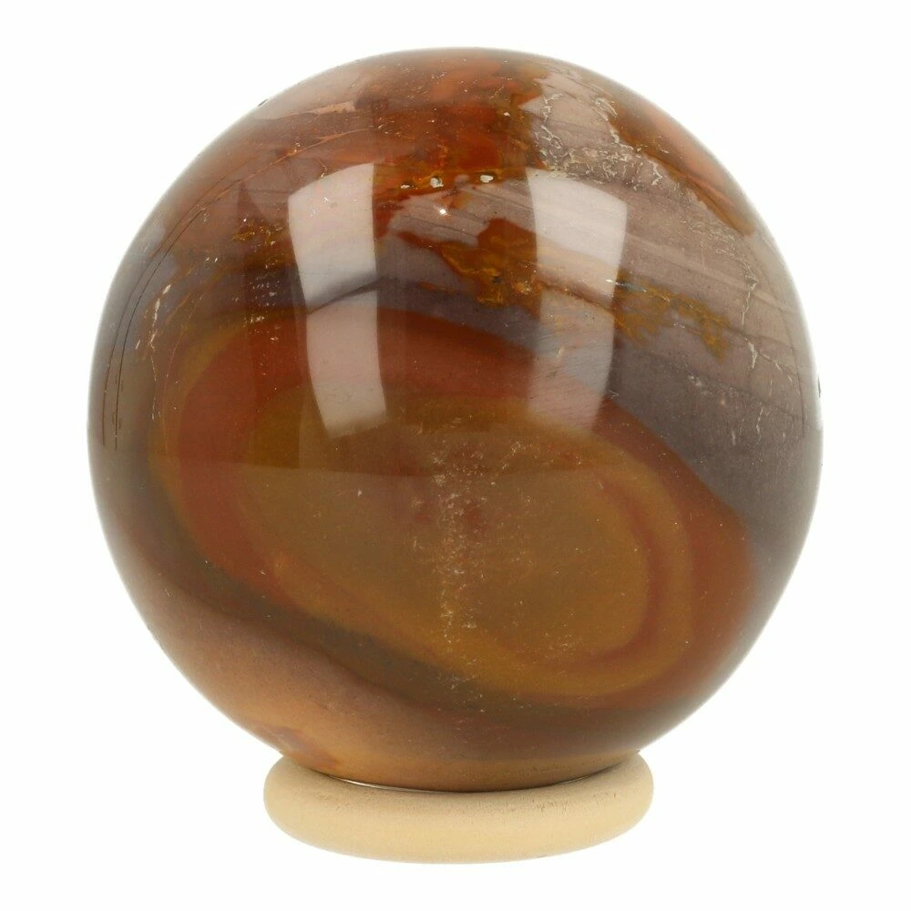 Mooie polychroom jaspis bol met een diameter van circa 77mm. Deze fraaie bol met veel tinten en gekleurde vlakken brengt rust en vrede in huis. Helpt om je hoofd erbij te houden terwijl je de verbinding met de aarde versterkt. Een zachte energie die je uitnodigt te gronden. Je ontvangt de polychroom jaspis bol met een houten ringetje.