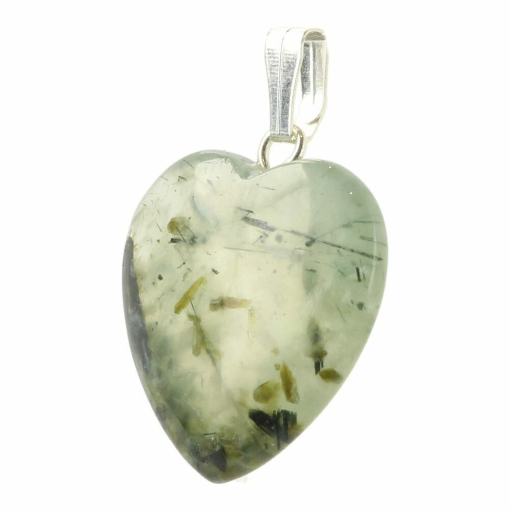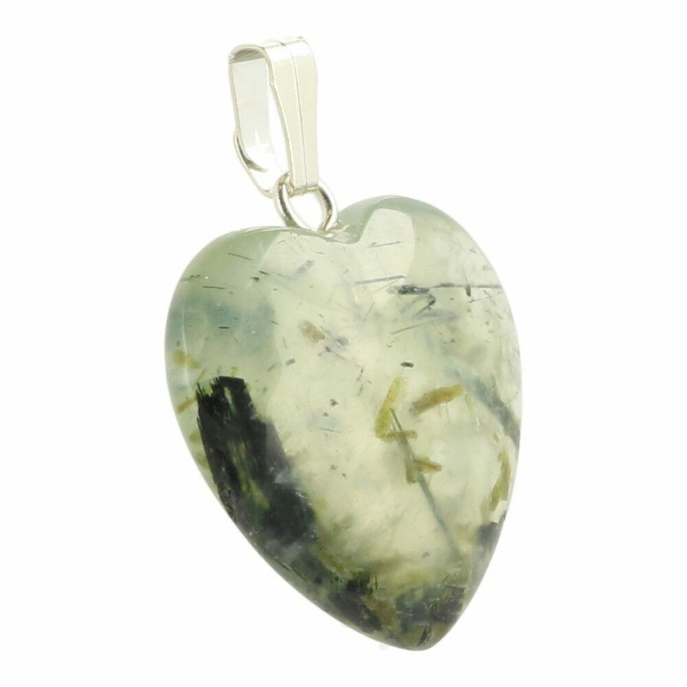 Mooie helder groene prehniet hartje hanger met een oogje en ongeveer 2cm breed.