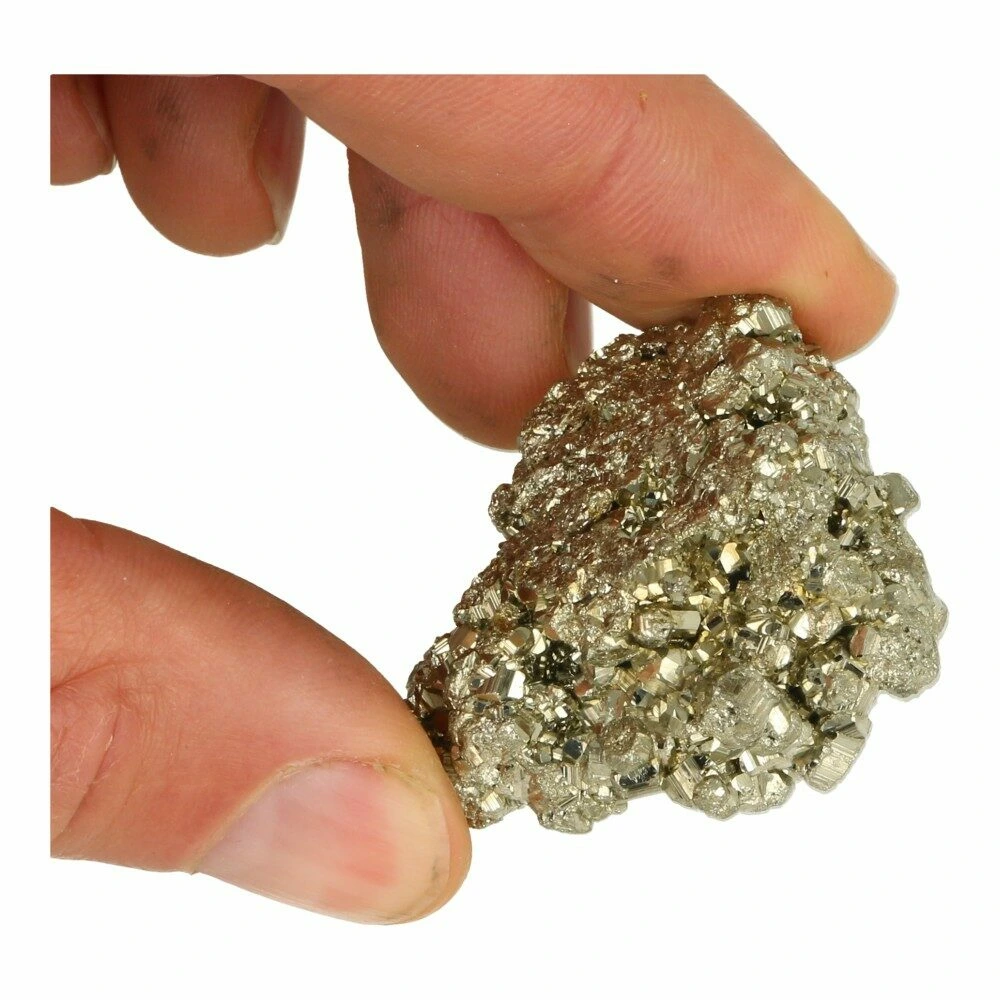 Fraaie stukjes pyriet ruw van 3-5cm lang uit Peru met mooie kleine kristallen. Deze stukjes pyriet hebben een mooie glans met fraaie kristallen aan alle zijdes. Je ontvangt een soortgelijk stukje pyriet als op de foto’s.