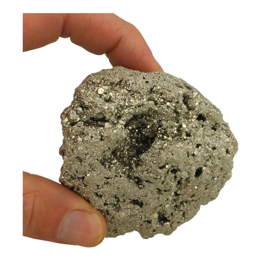 Fraai stuk pyriet ruw ‘A’ uit Peru van circa 9 x 6,5 x 4,5 cm. Dit stuk pyriet heeft een mooie glans met fraaie kristallen. Je ontvangt het stuk pyriet van de foto.