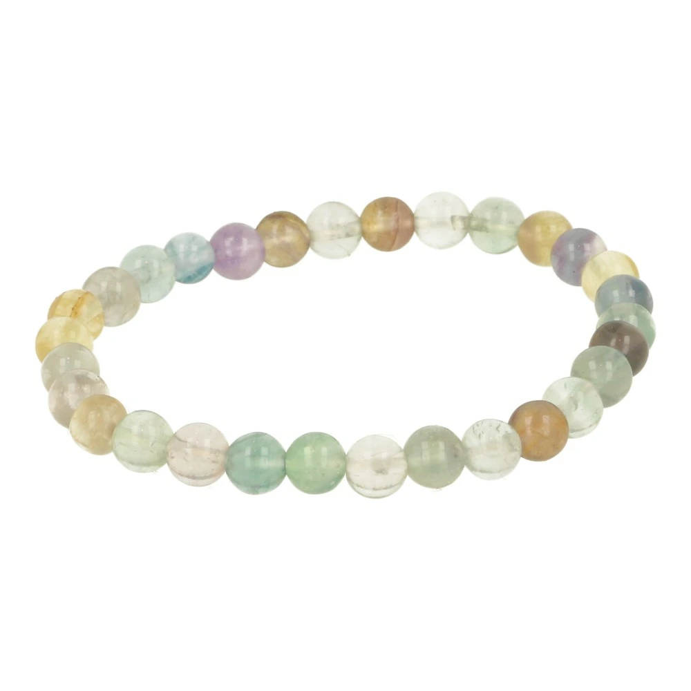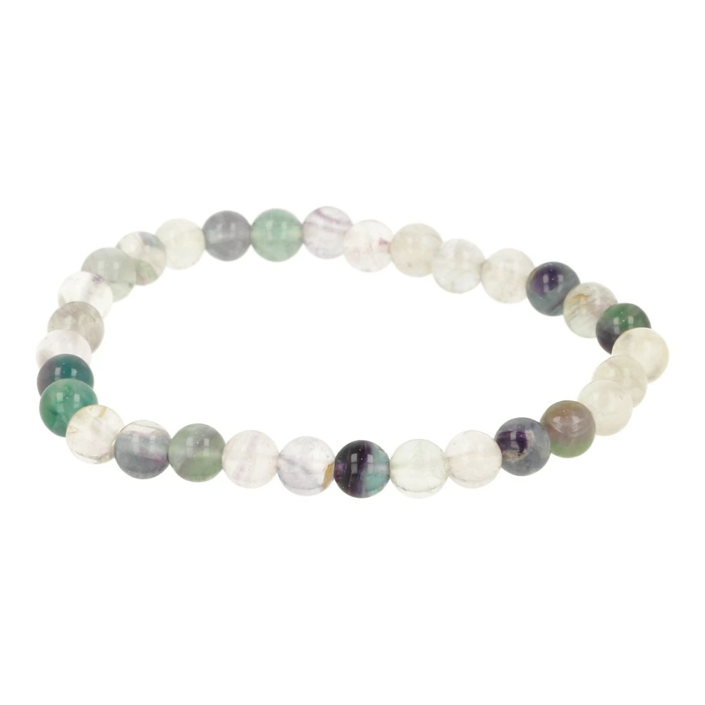 Prachtige regenboog fluoriet armband 6mm met verschillende kleuren fluoriet kralen van ongeveer 6mm aan rekbaar koord. Je ontvangt een soortgelijke fluoriet armband 4mm als op de foto. De regenboog fluoriet armband bestaat uit o.a. groene, paarse, gele en blauwe fluoriet kralen. De lengte van deze fluoriet armband 6mm past bij een polsomtrek van ongeveer 17-18cm.