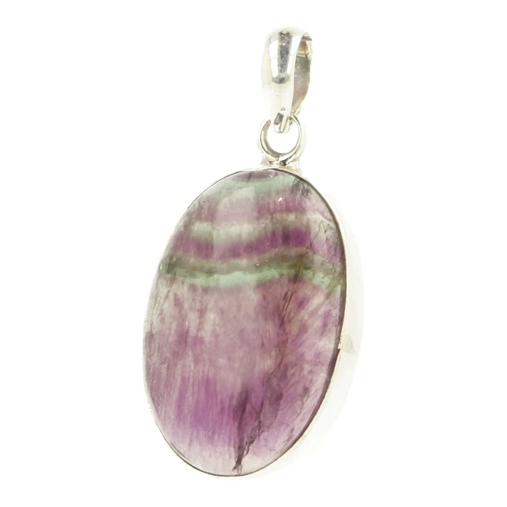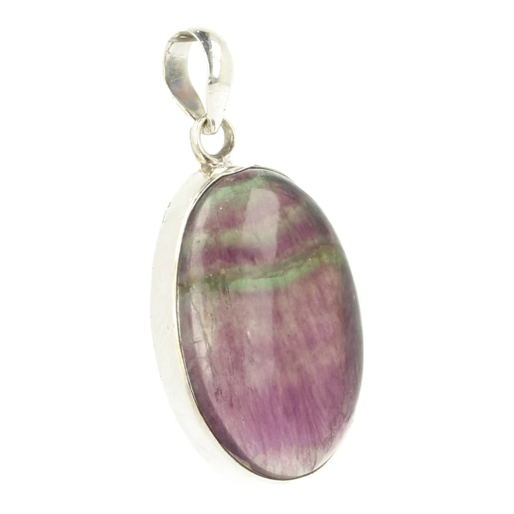 Prachtige paars met groene regenboog fluoriet hanger in zilver ‘nr3’. De fraaie regenboog fluoriet is gevat in juwelierskwaliteit zilver van 925 sterling. De fluoriet in de hanger is 2,9cm hoog en 2cm breed. Je ontvangt de regenboog fluoriet hanger in zilver van de foto.