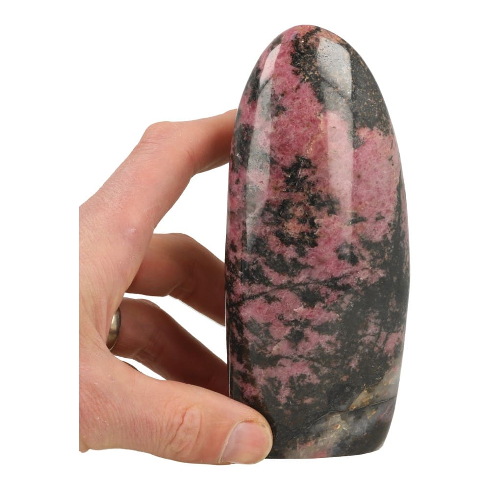 Mooie zwart-roze rhodoniet gepolijste vrije vorm van 152mm hoog, 73mm breed en 51 mm dik. Je ontvangt de rhodoniet vrije vorm van de foto.