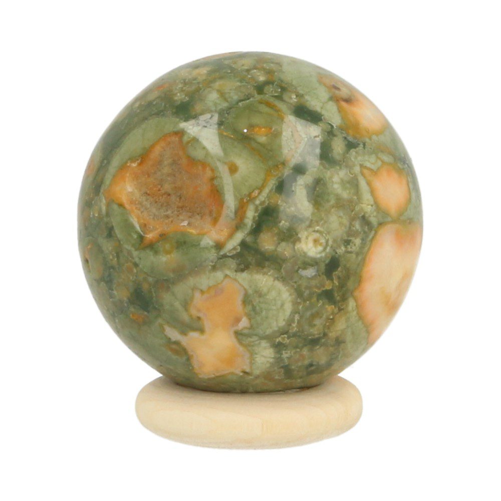 Prachtige rhyoliet bol met een diameter van circa 3cm op een houten ring. De tekening varieert onderling, en ook kan deze rhyoliet bol natuurlijke holtes bevatten. Je ontvangt dus een soortgelijke rhyoliet bol als op de foto.  Rhyoliet wordt ook wel regenwoudjaspis genoemd.