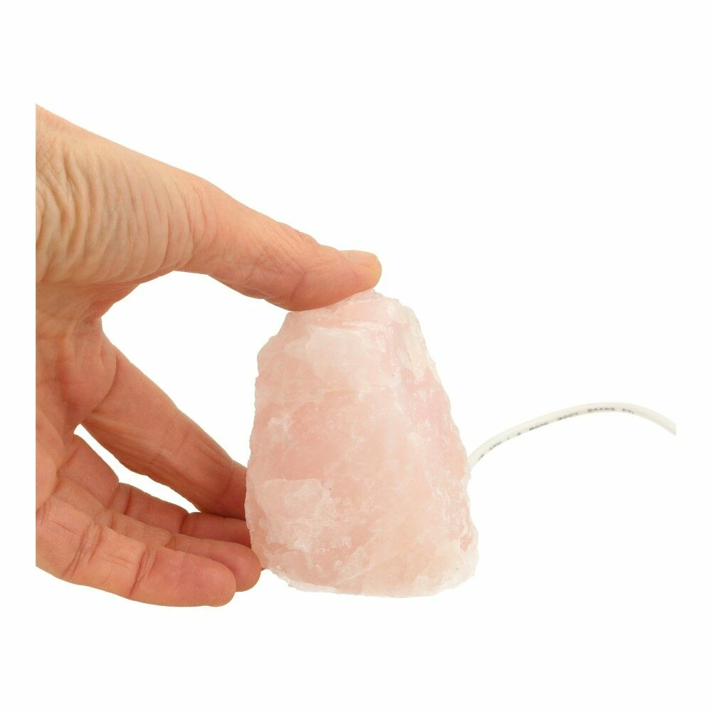 Mooie rozenkwarts lamp ruw met een afmeting van circa 7cm hoog en 5-5,5cm breed. Je ontvangt een soortgelijke rozenkwarts lamp 7cm als op de foto. Je ontvangt deze rozenkwarts lamp met een led lampje met USB aansluiting.