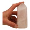 Fijne rozenkwarts geslepen punt uit Madagaskar met een heldere energie. De afmeting van deze rozenkwarts punt is circa 13,2 cm hoog, met een basis van 5,5 x 4,5 cm Je ontvangt de rozenkwarts punt van de foto.