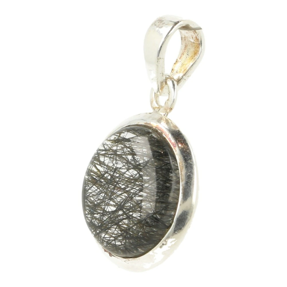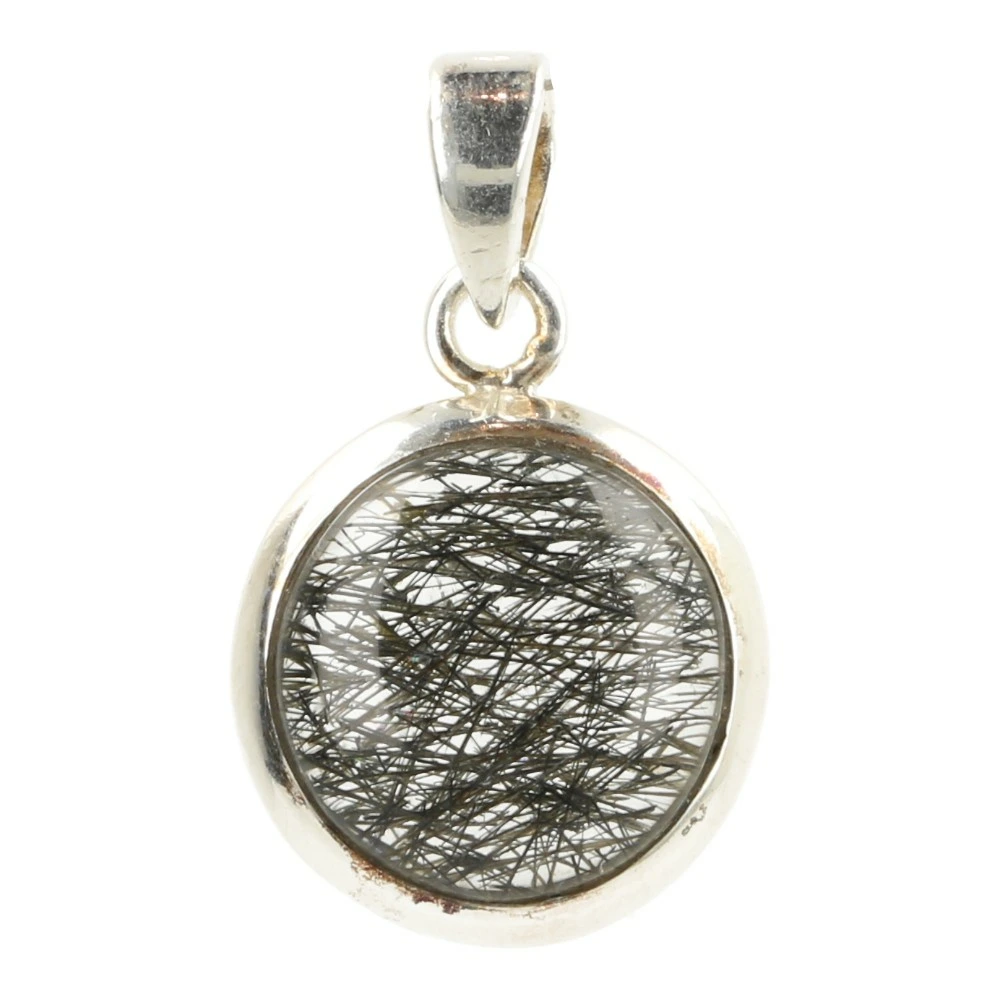 Fraaie rondgeslepen zwarte rutielkwarts hanger gevat in juwelierskwaliteit zilver (925 sterling). Je kunt de zwarte rutielnaaldjes goed zien in de geslepen bergkristal. De diameter van de zwarte rutielkwarts in de hanger is ongeveer 17mm. Je ontvangt de rutielkwarts hanger van de foto.