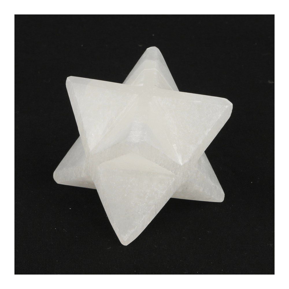 Mooie witte seleniet merkaba (satijnspaat) van ongeveer 5,5cm breed, diep en hoog. We hebben meerdere seleniet merkaba vormen op voorraad, je ontvangt een soortgelijke seleniet merkaba als op de foto. De energie van seleniet wordt hierin gecombineerd met de merkaba-vorm. De naam merkaba wordt ook wel als merkabah geschreven. De merkaba-vorm is een van de heilige geometrieën en staat voor je lichtlichaam, dat wat overblijft als je bent overleden. Je oneindige bron en verbinding met universele wijsheid.