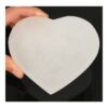 Fraai gesneden seleniet (satijnspaat) schaaltje in hartvorm van ongeveer 15-16cm breed, 13-14cm hoog en 4cm dik. Een fijn bakje van seleniet om je sieraden op te laden, kleine steentjes in neer te leggen of als decoratie. Afhankelijk van het invallende licht kan de kleur meer wit of juist doorzichtig ogen. Seleniet kan beter niet te veel met water in contact komen. Je ontvangt een soortgelijke seleniet schaaltje als op de foto.