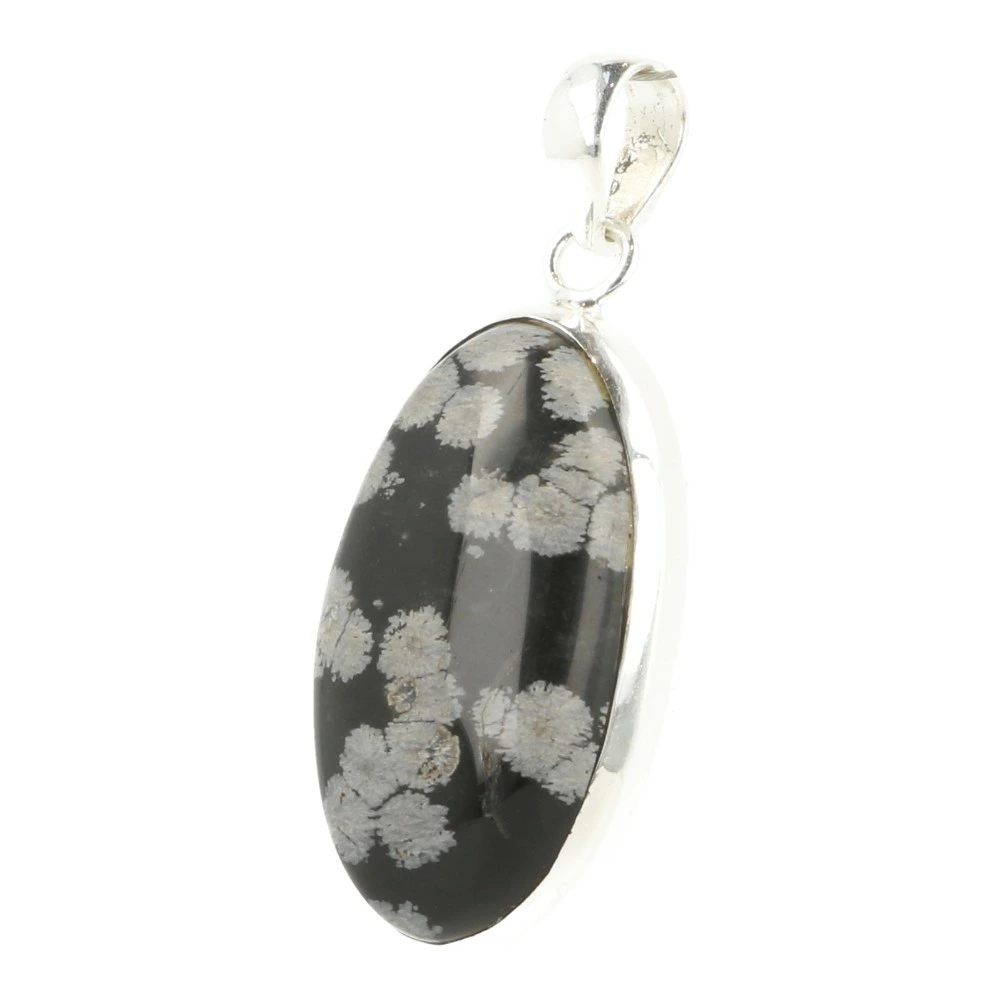 Sneeuwvlok obsidiaan hanger in zilver ‘nr6’. De sneeuwvlok obsidiaan is gezet in juwelierskwaliteit 925 sterling zilver. De afmeting van de sneeuwvlokobsidiaan steen in de hanger is ongeveer 20mm breed en 33mm hoog. Je ontvangt de sneeuwvlok obsidiaan hanger in zilver van de foto.