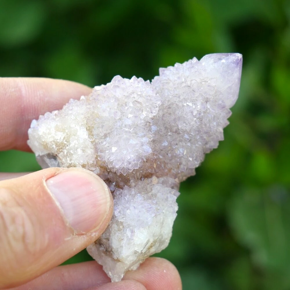 Spiritkwarts of cactusamethist is een paarse edelsteen en wordt alleen gevonden in Zuid-Afrika. Het is een bijzondere variant van amethist, die zijn naam dankt aan de vele kleine puntjes die op het hoofdkristal zijn gevormd. De meer spirituele naam ‘spiritkwarts’ komt grappig genoeg van de kleur die overeenkomt met roze spiritus, ‘spirit’ in het Engels. Echter wel een doeltreffende naam gezien de energie.